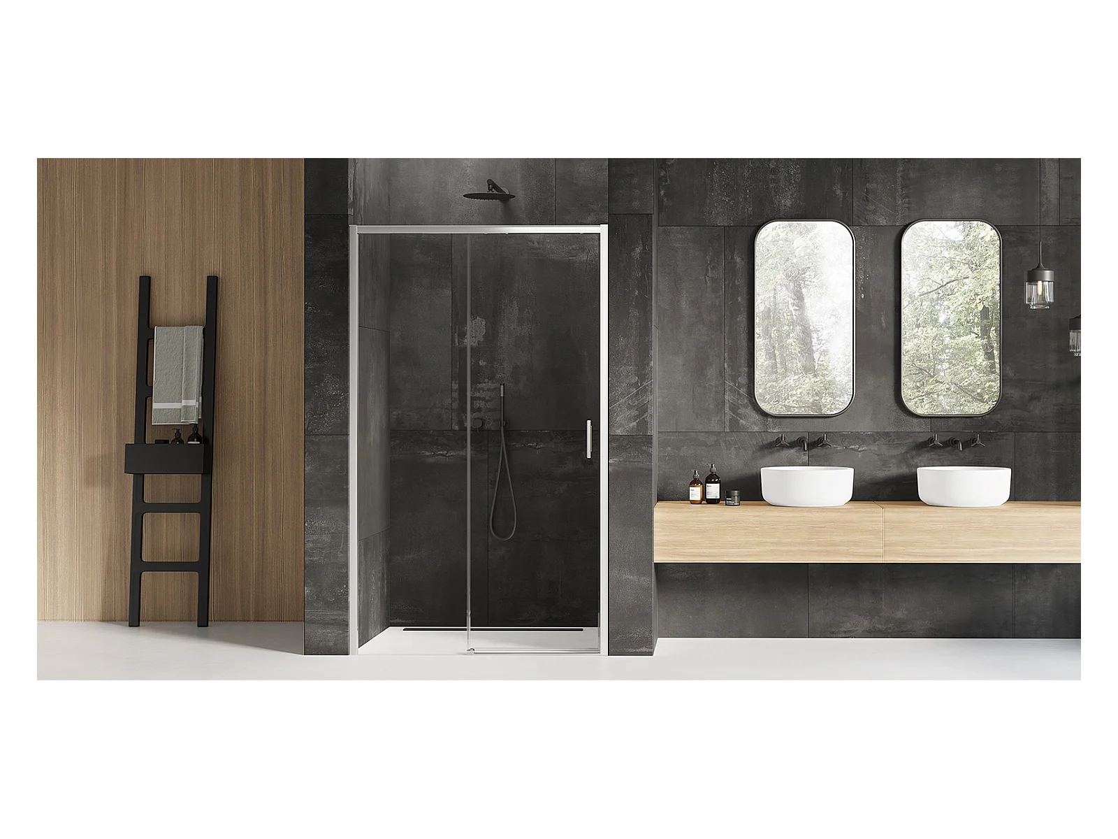 Porte de douche coulissante chromé droite 2 volets IBIZA CHROME,Largeur: 140 cm