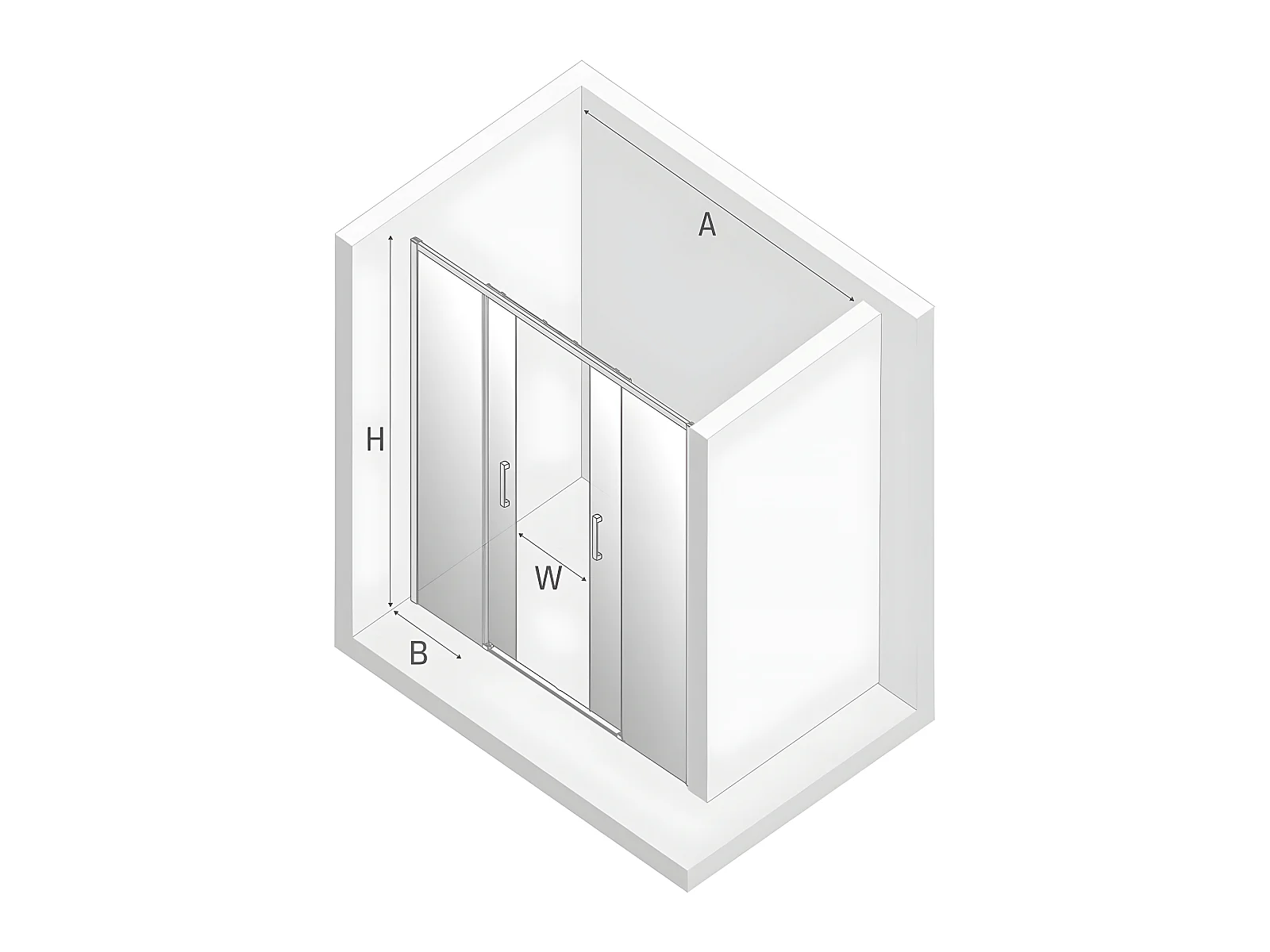 Porte de douche coulissante chromé droite 4 volets IBIZA CHROME,Largeur: 170 cm