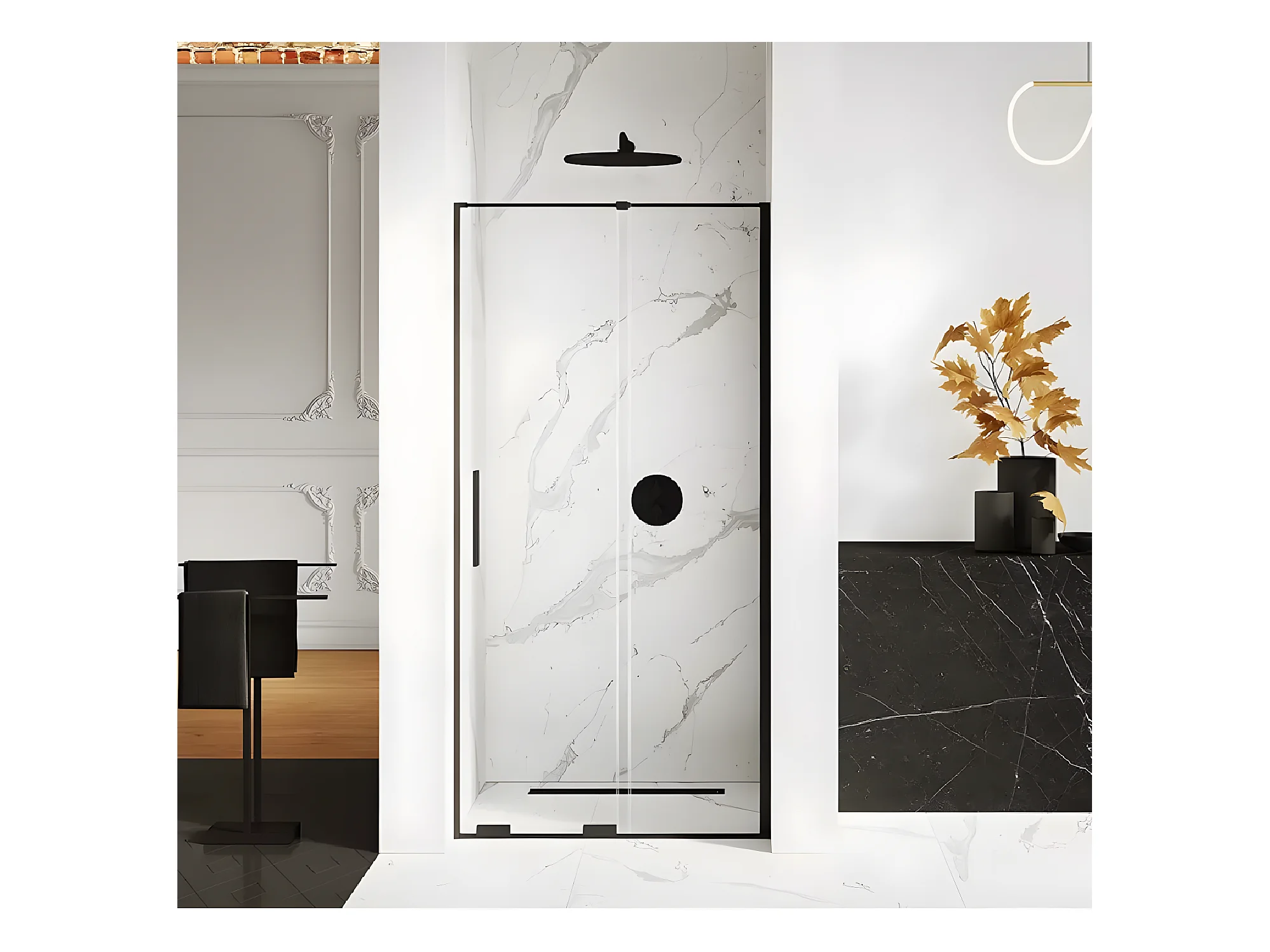Porte de douche coulissante noire 2 volets CANARIES BLACK,Largeur: 110 cm, verre 8 mm