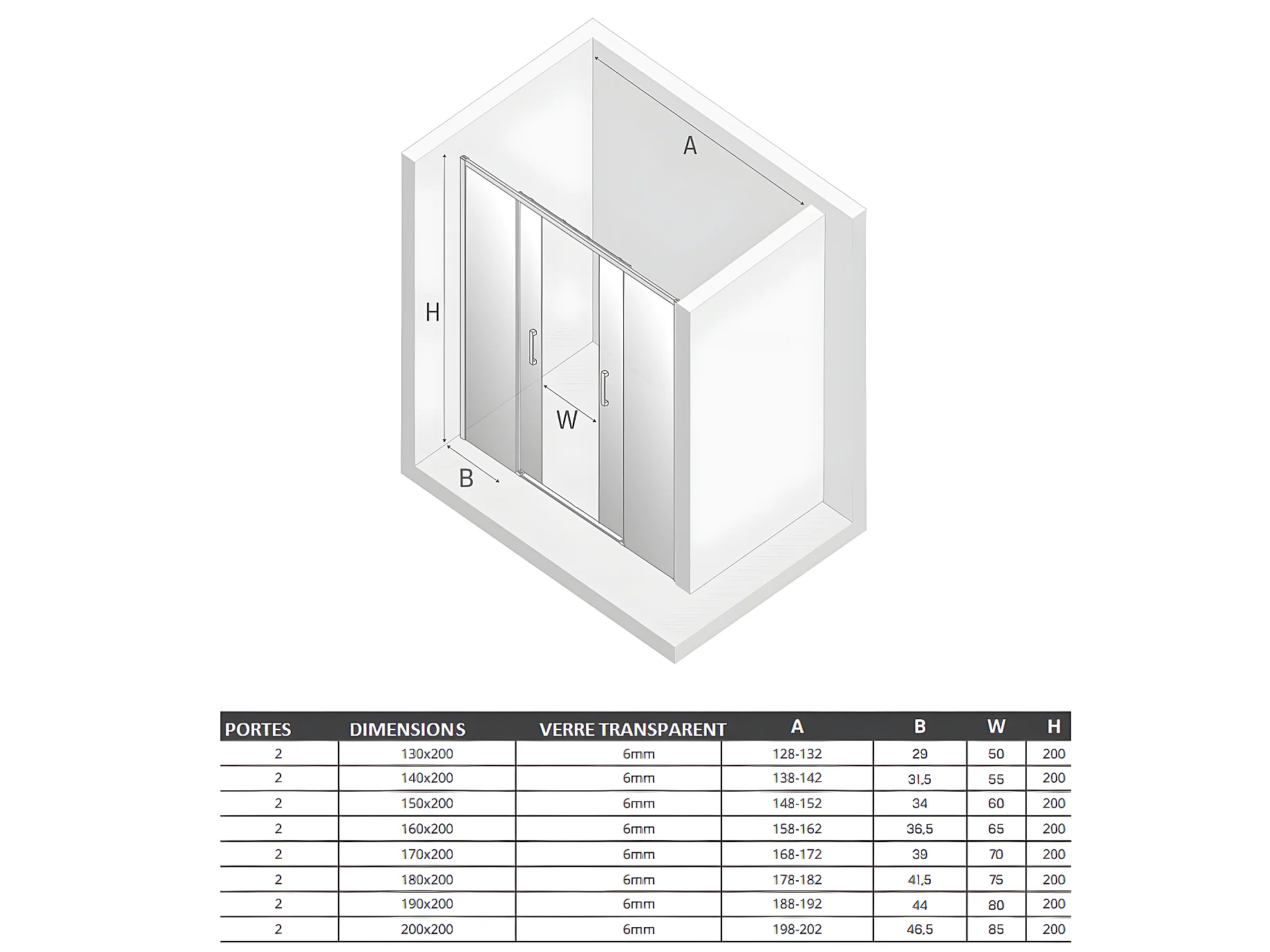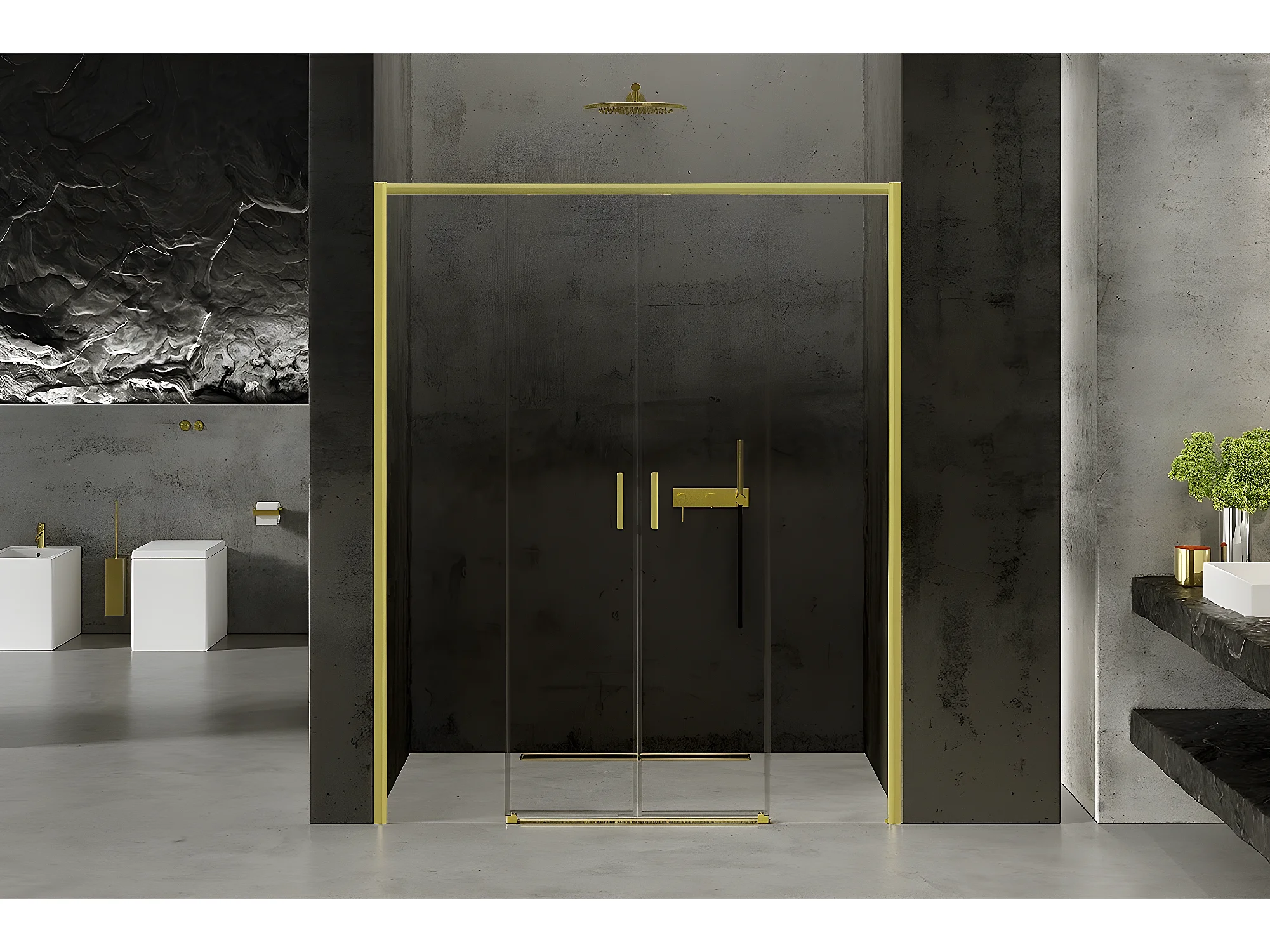 Porte de douche doré 200 cm, coulissante, 4 volets KAPRI GOLD