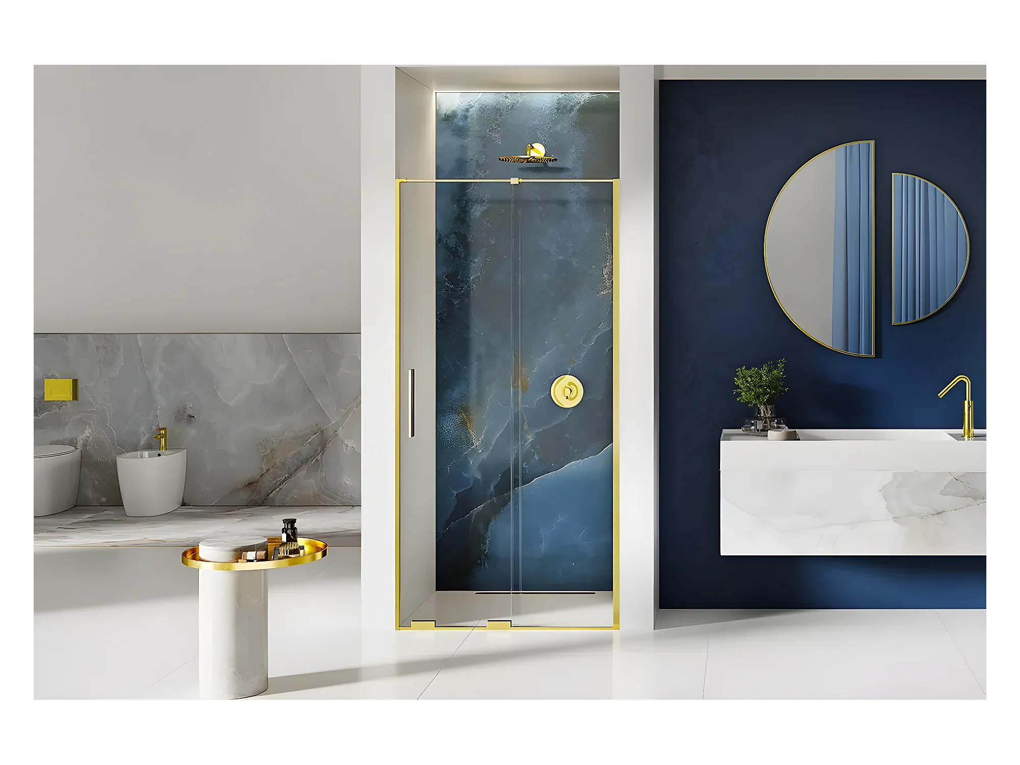 Porte de douche dorée 160 cm 2 volets coulissante gauche HAWAII GOLD