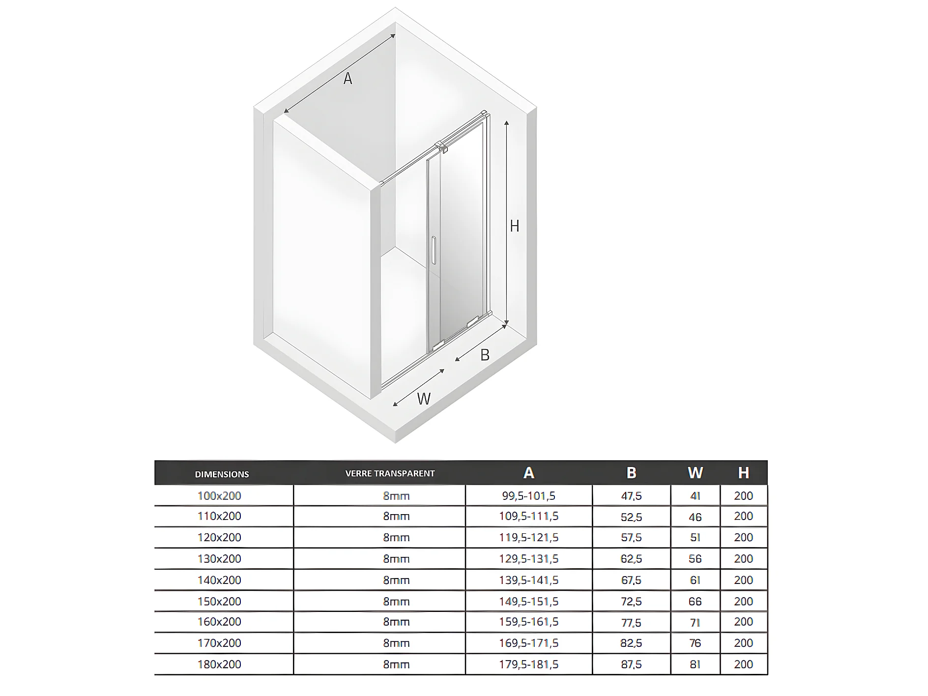 Porte de douche dorée 170 cm 2 volets coulissante gauche HAWAII GOLD