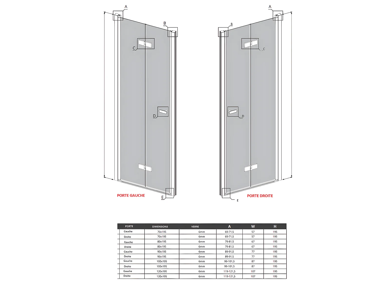 Porte de douche pliante droite 90 cm noire RHODES BLACK