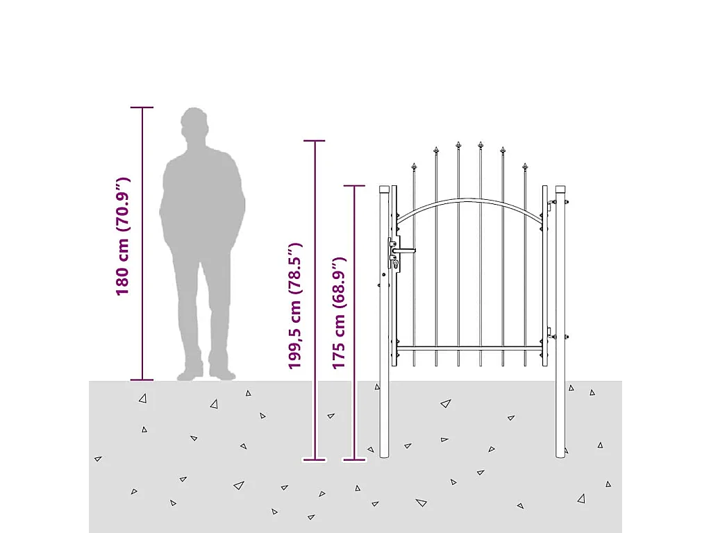 Porte de Clôture Gris 100 x 175 cm Acier revêtu de poudre