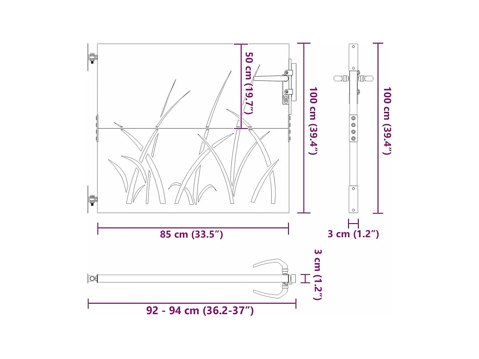 Porte de Jardin Noir 105 x 100 cm Acier peint par poudre