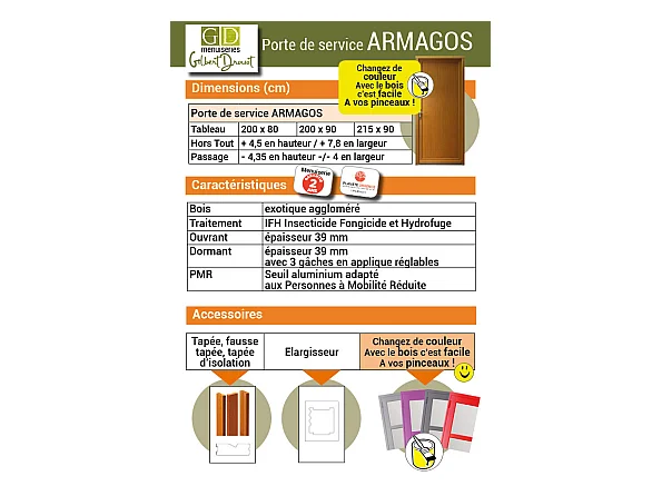 Porte De Service Bois Pleine Armagos, H,200xl,90 P,gauche Côtes Tableau Gd Menuiseries