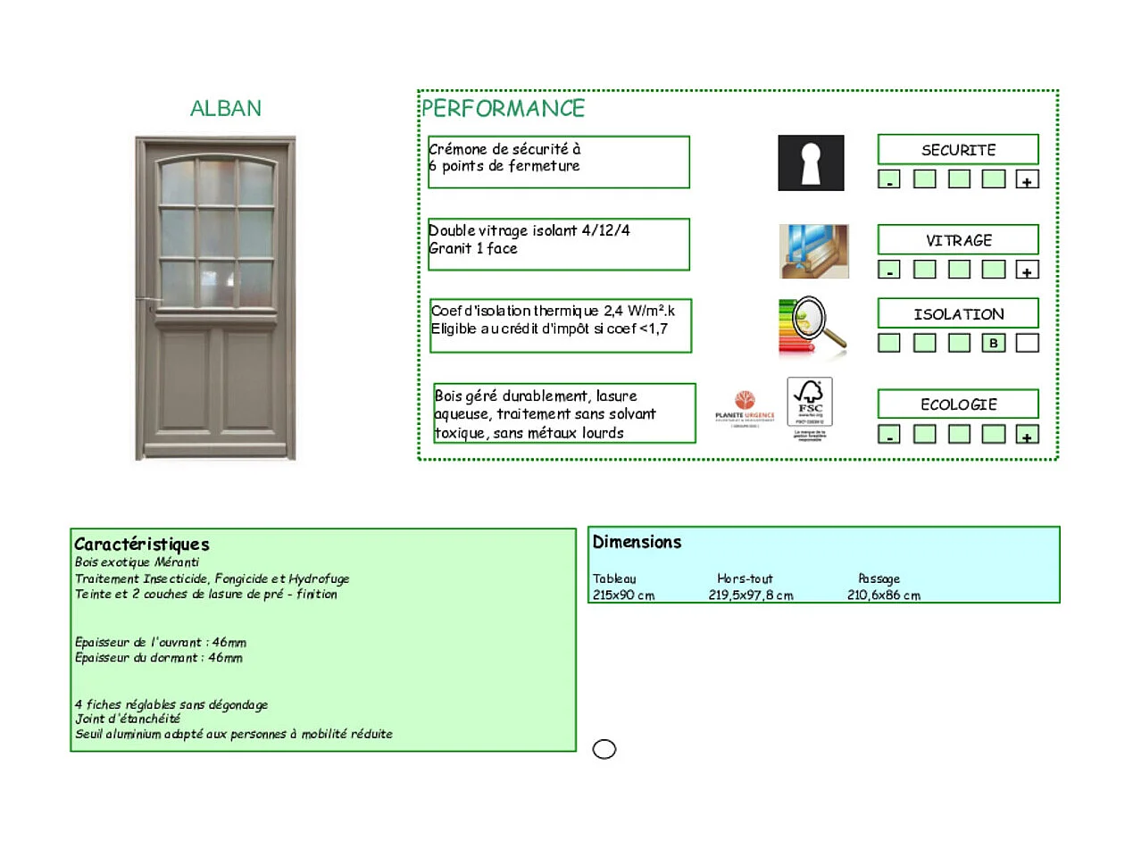 Porte d'entree Bois vitree, Alban Gris RAL 7039, H,215xl,90 p,gauche Cotes Tableau