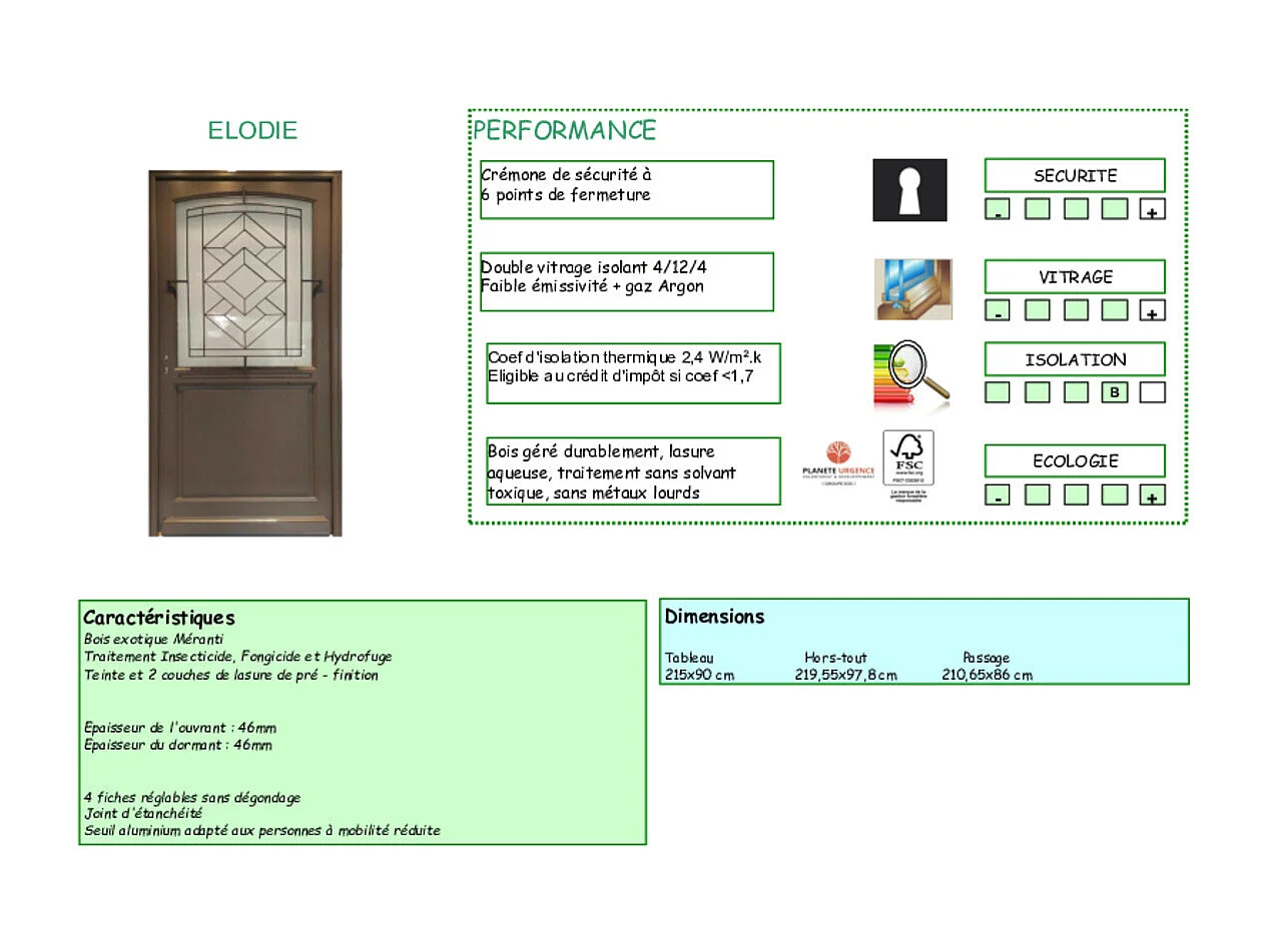 Porte d'entree Bois vitree, Elodie Gris RAL 7039, H,215xl,90 p,gauche Cotes Tableau