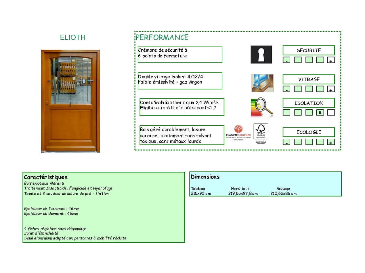 Porte d'entree Bois Vitree, Vitrage Transparent, ELIOTH, H,215xl,90 p, droit + Poignee Et Barillet (ref 010403FP) Cotes Tableau