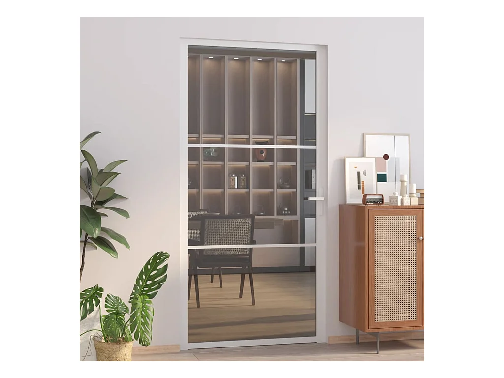 Porte intérieure 102,5x201,5 cm Blanc Verre ESG et aluminium FR168850