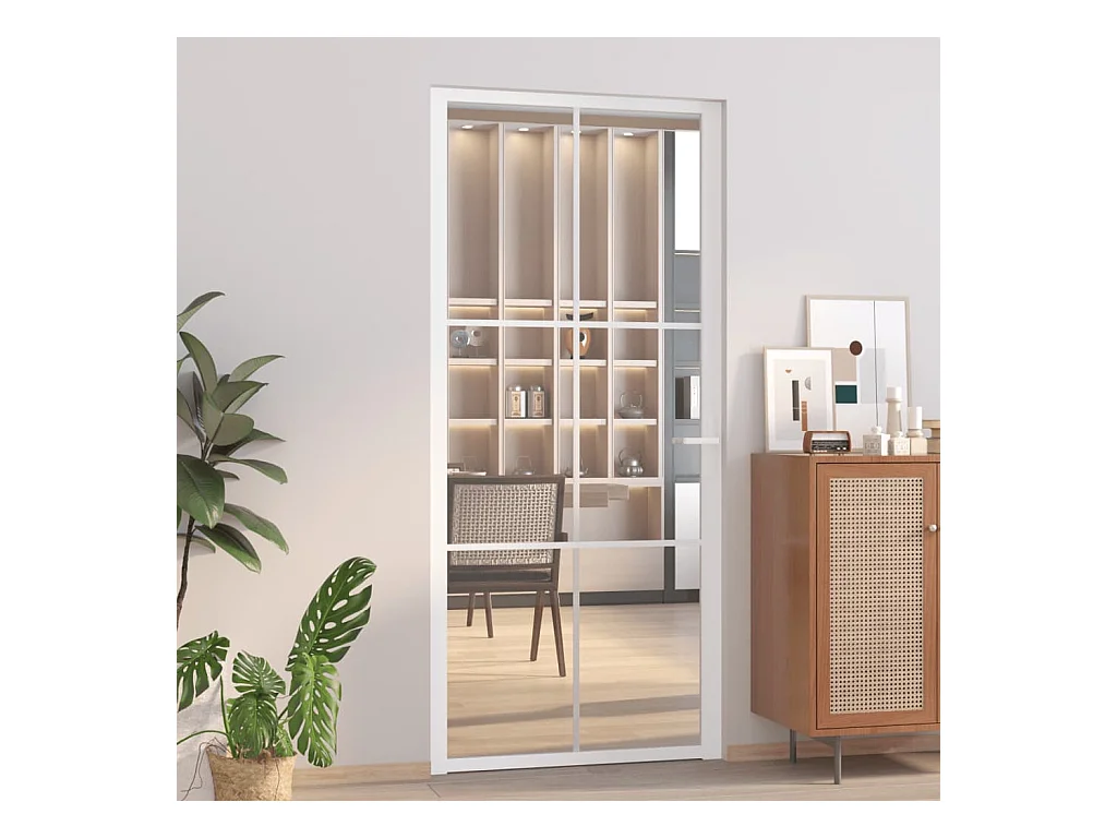 Porte intérieure 93x201,5 cm Blanc Verre ESG et aluminium FR666875