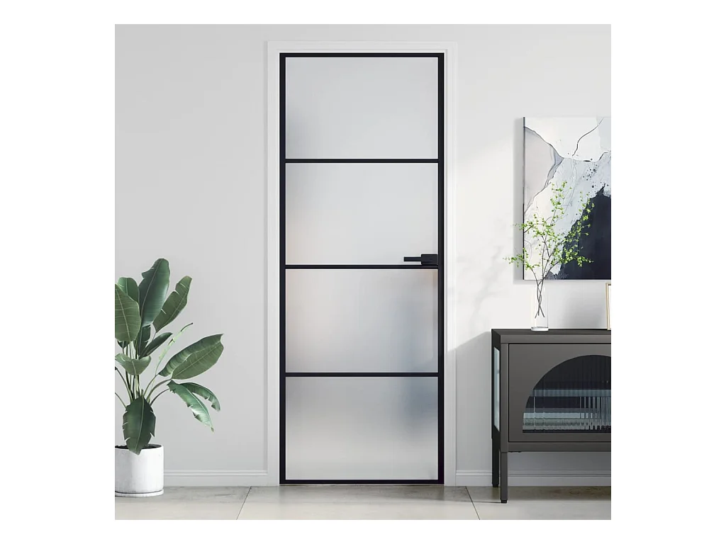 Porte intérieure mince noir 76x201,5 cm verre trempé aluminium FR195126