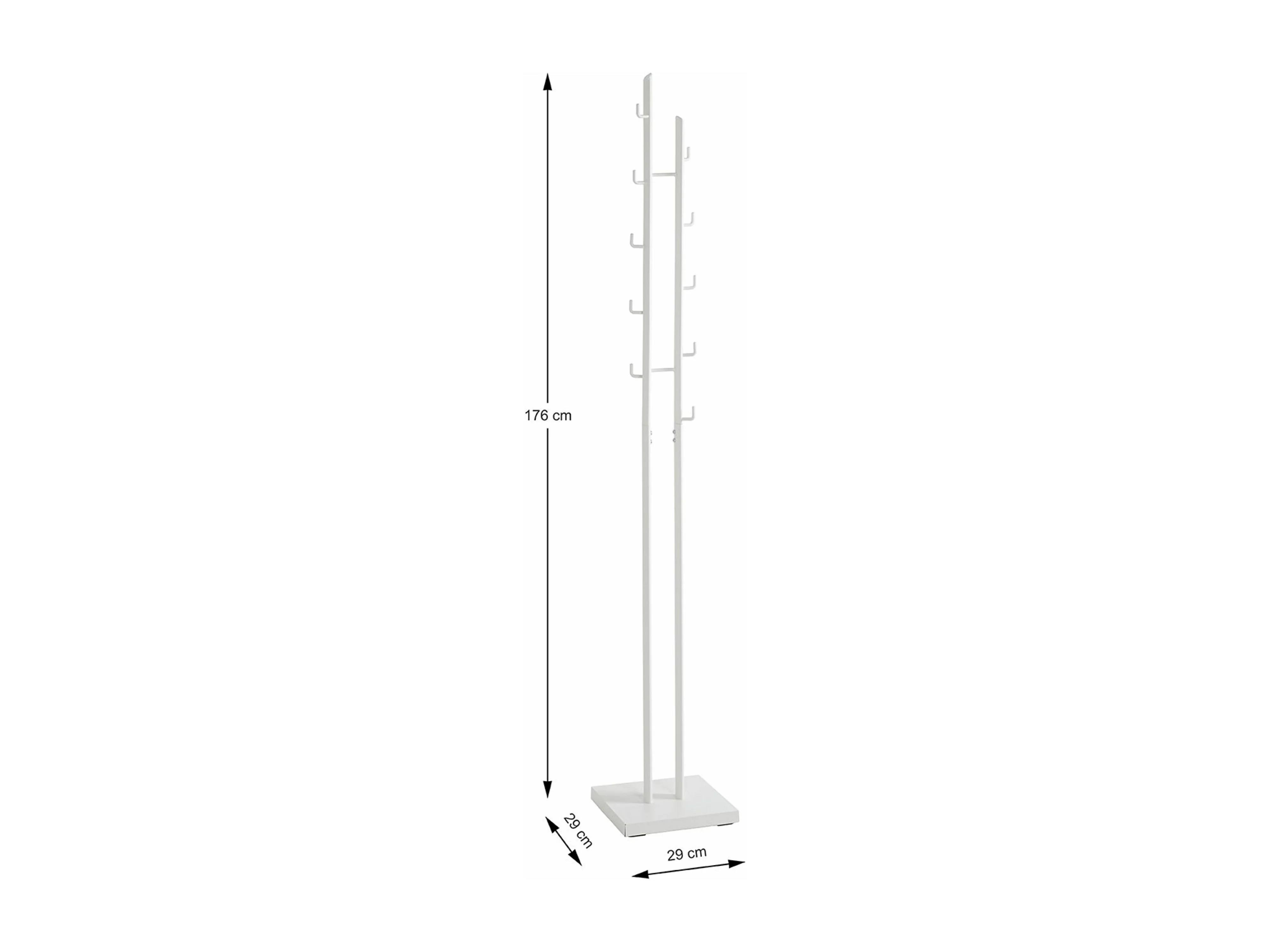 Porte-manteau avec 8 crochets en métal coloris blanc - longueur 29 x profondeur 29 x hauteur 176 cm