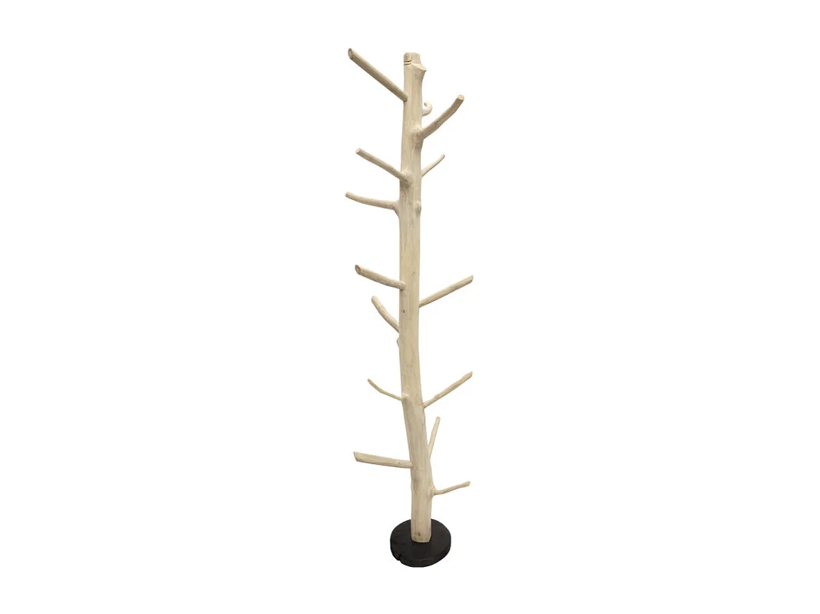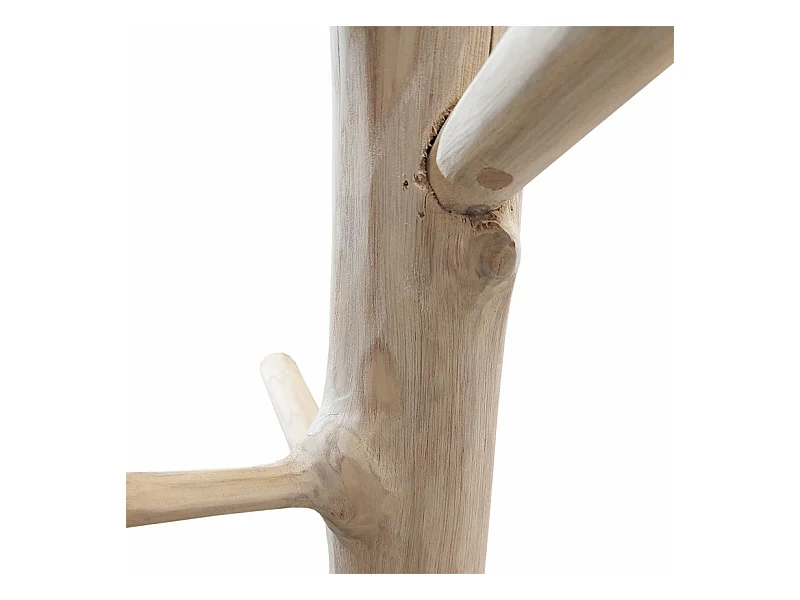 Porte-manteau branche bois de teck brut 180 cm pied rond noir - NAO