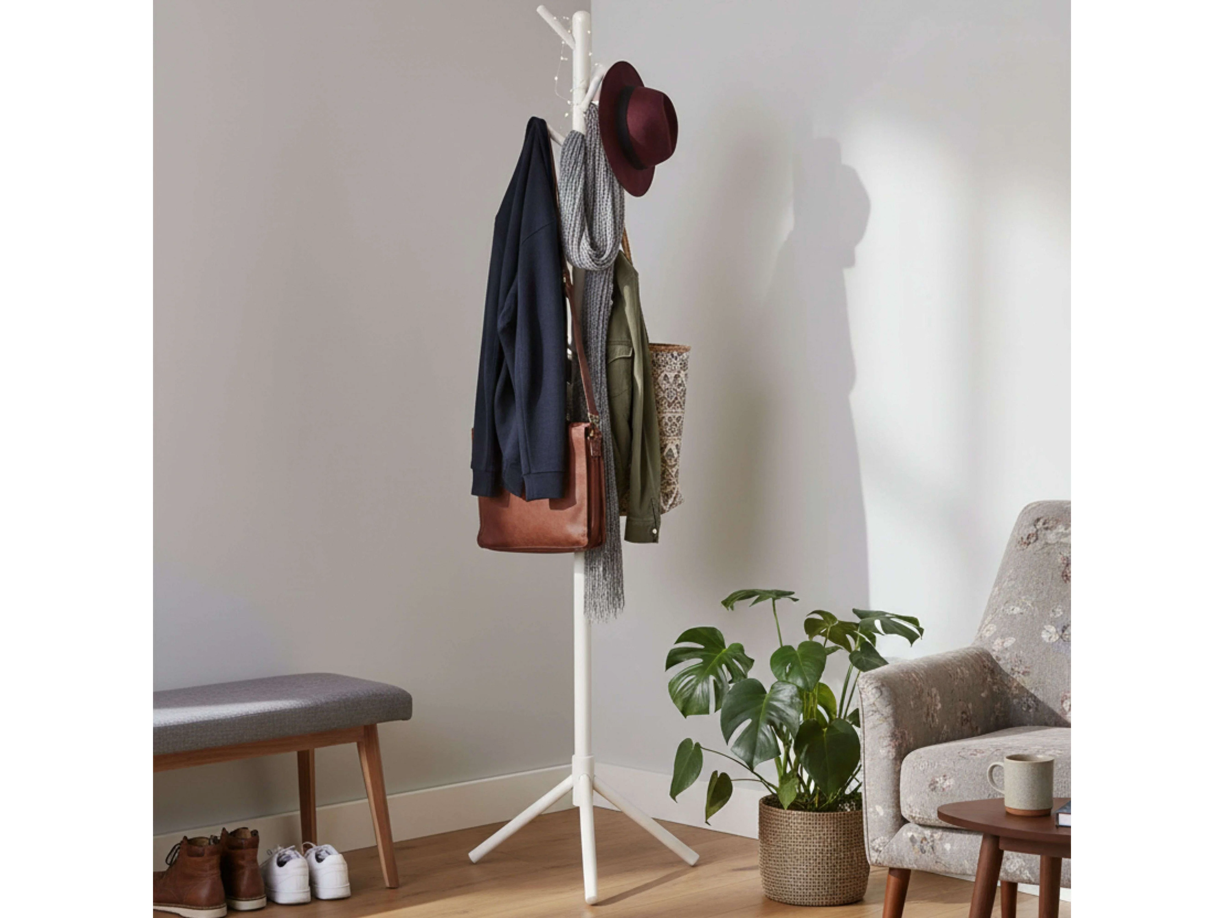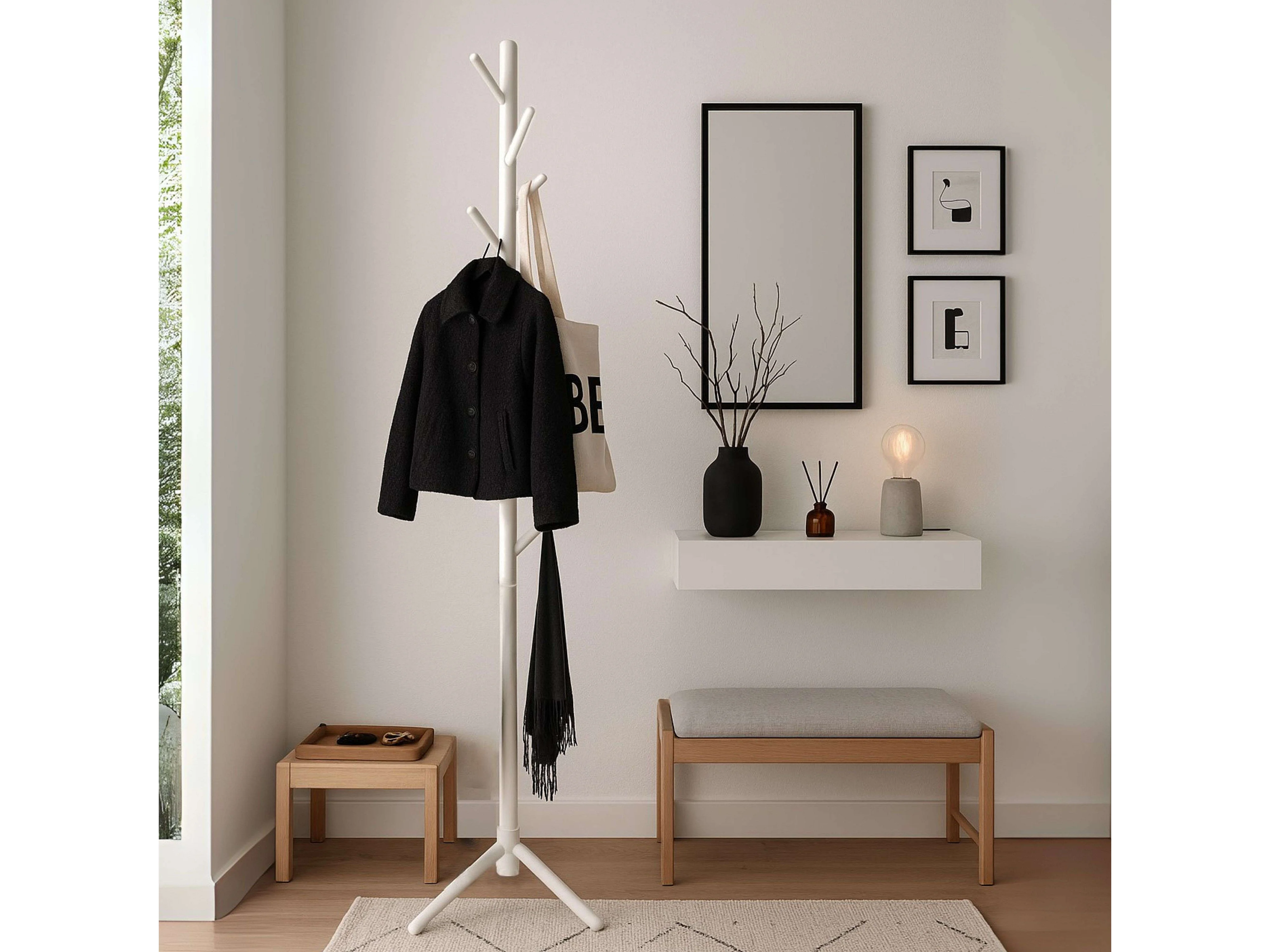 Porte-manteau avec 8 crochets en métal coloris blanc - diamètre 48 x hauteur 173 cm