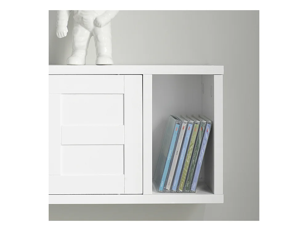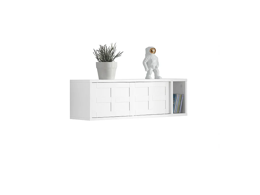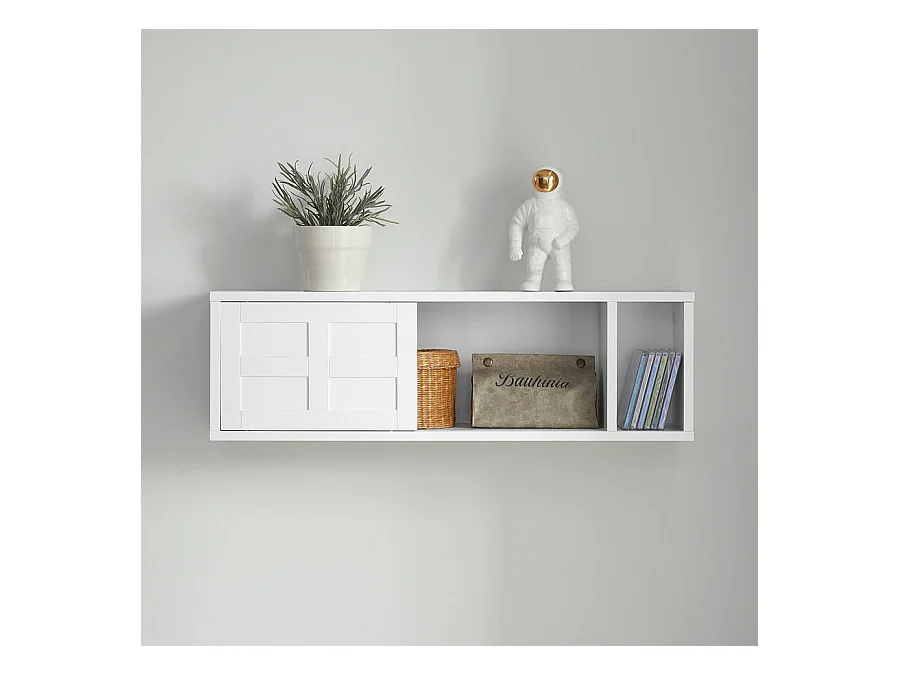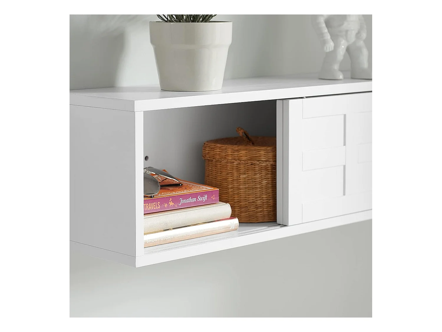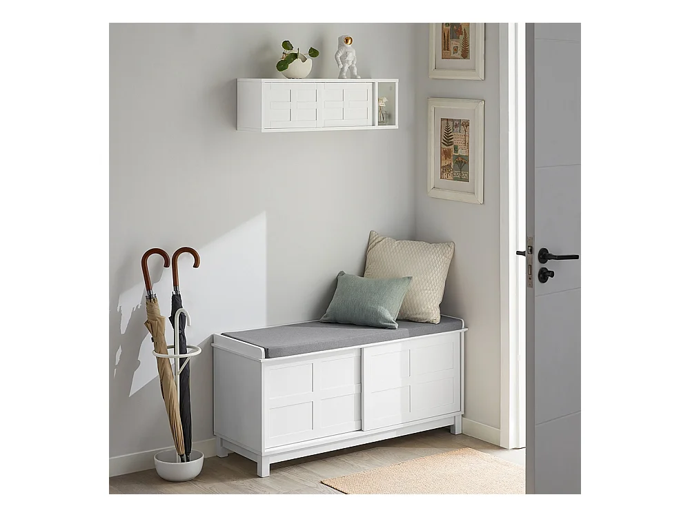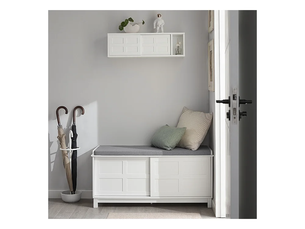 Porte-manteau Étagère Murale avec 2 Portes Coulissantes et 1 Compartiment, FHK18-W