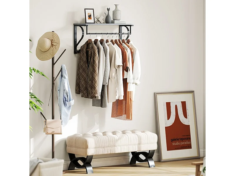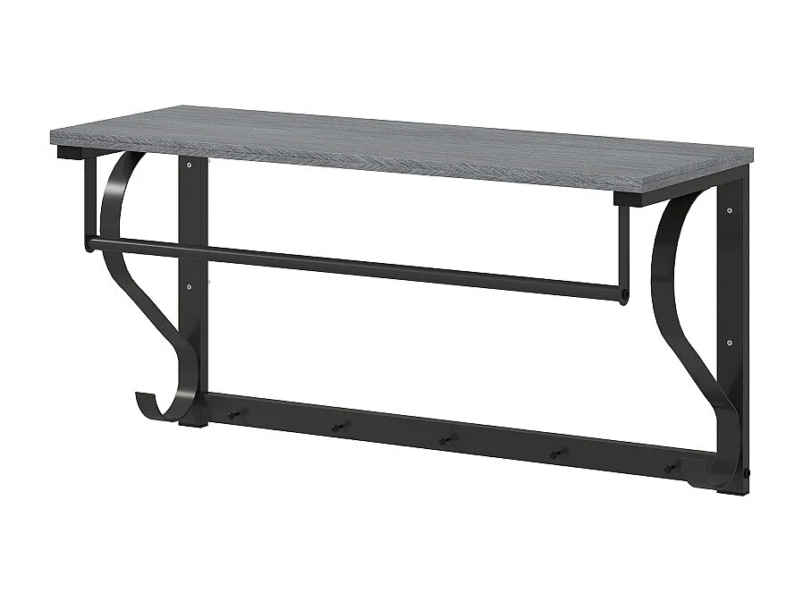 Irwin Portemanteau mural, 1 tablette de rangement, 1 tringle et 3 crochets, style gris Matera, look vieux bois.