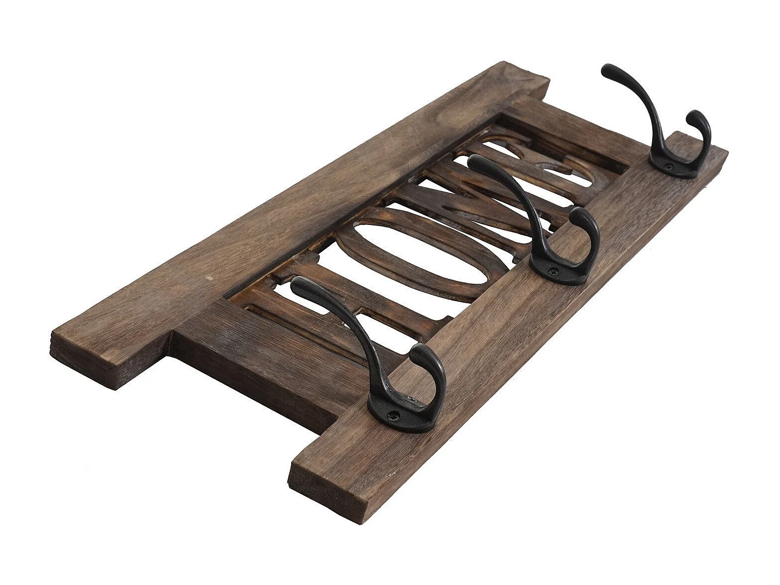 Porte-manteau mural patère en bois marron 60 x 1.5 x 20.5 cm MED04049