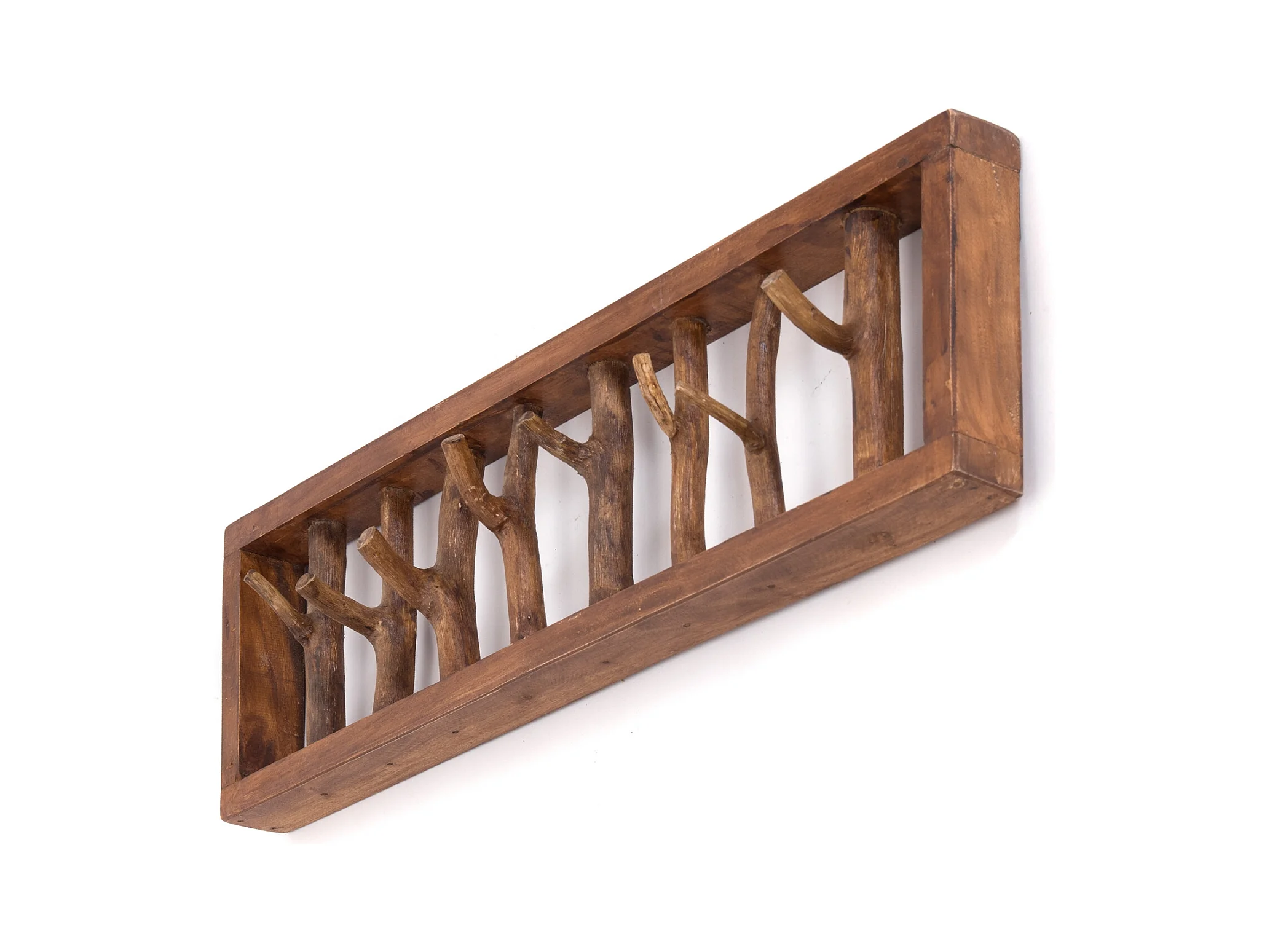 PORTE-MANTEAU MURAL Leonor 50 Bois massif en acajou, 7 crochets couleurs naturelles