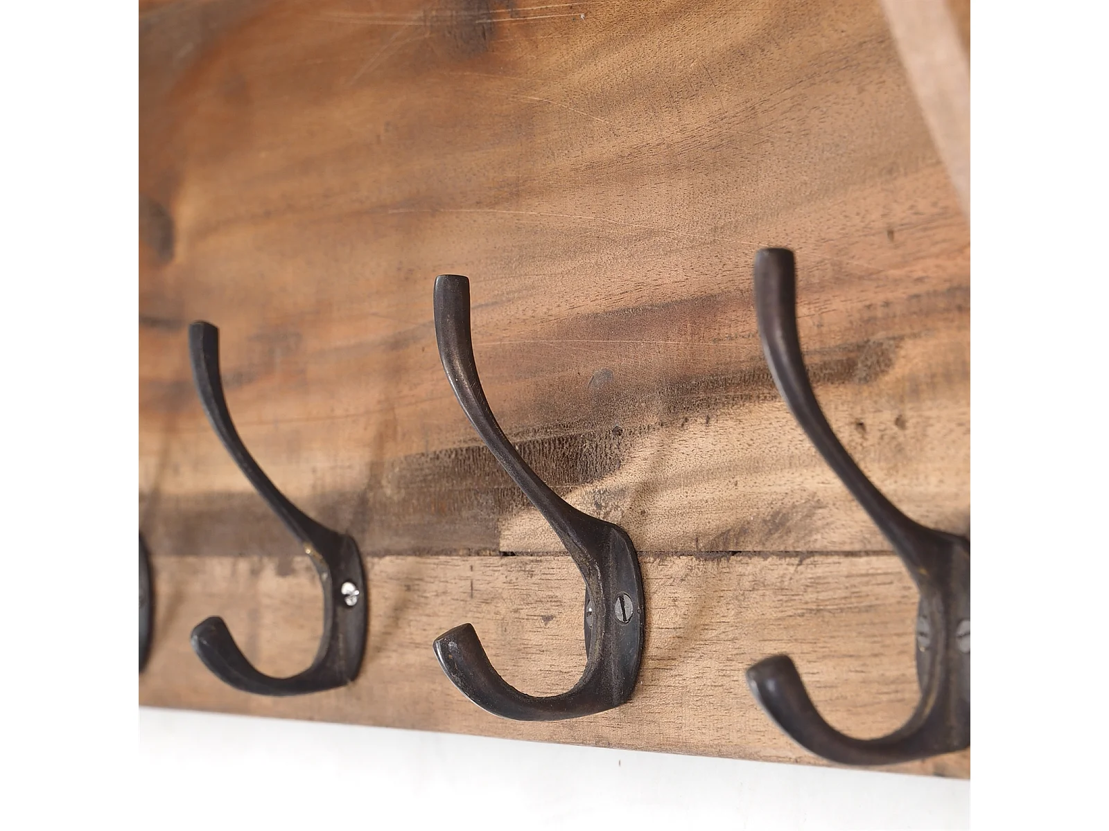 PORTE-MANTEAU MURAL VINTAGE Bois de recyclage, avec étagère, 8 crochets 01 natur-vintage