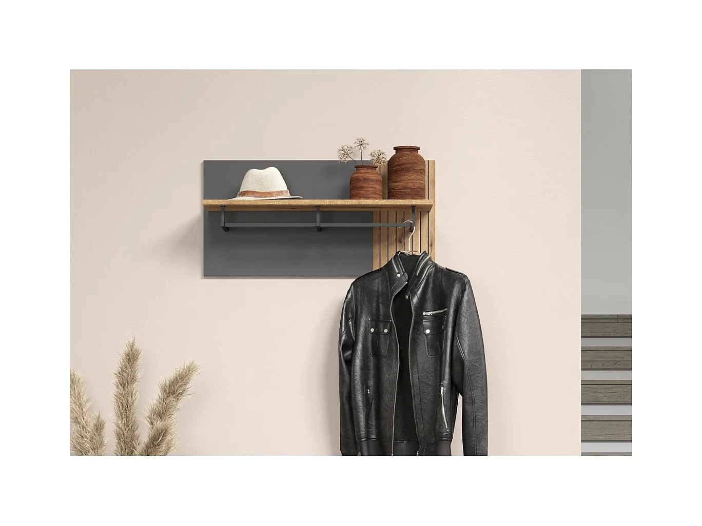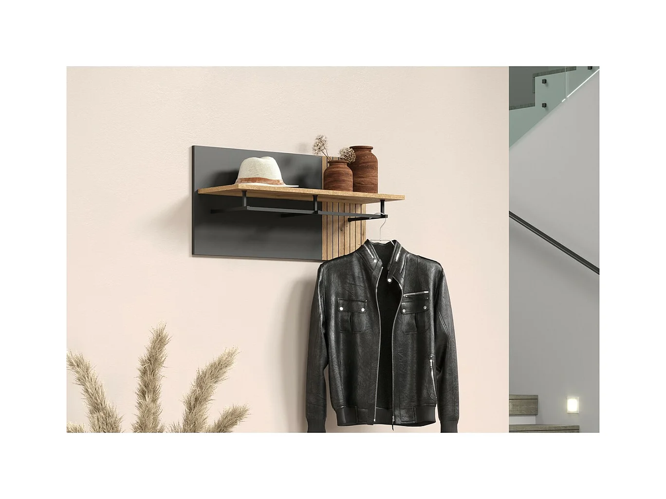 Porte-Manteau Murale Esteban, Anthracite, 80x40x28 cm, Seven Design