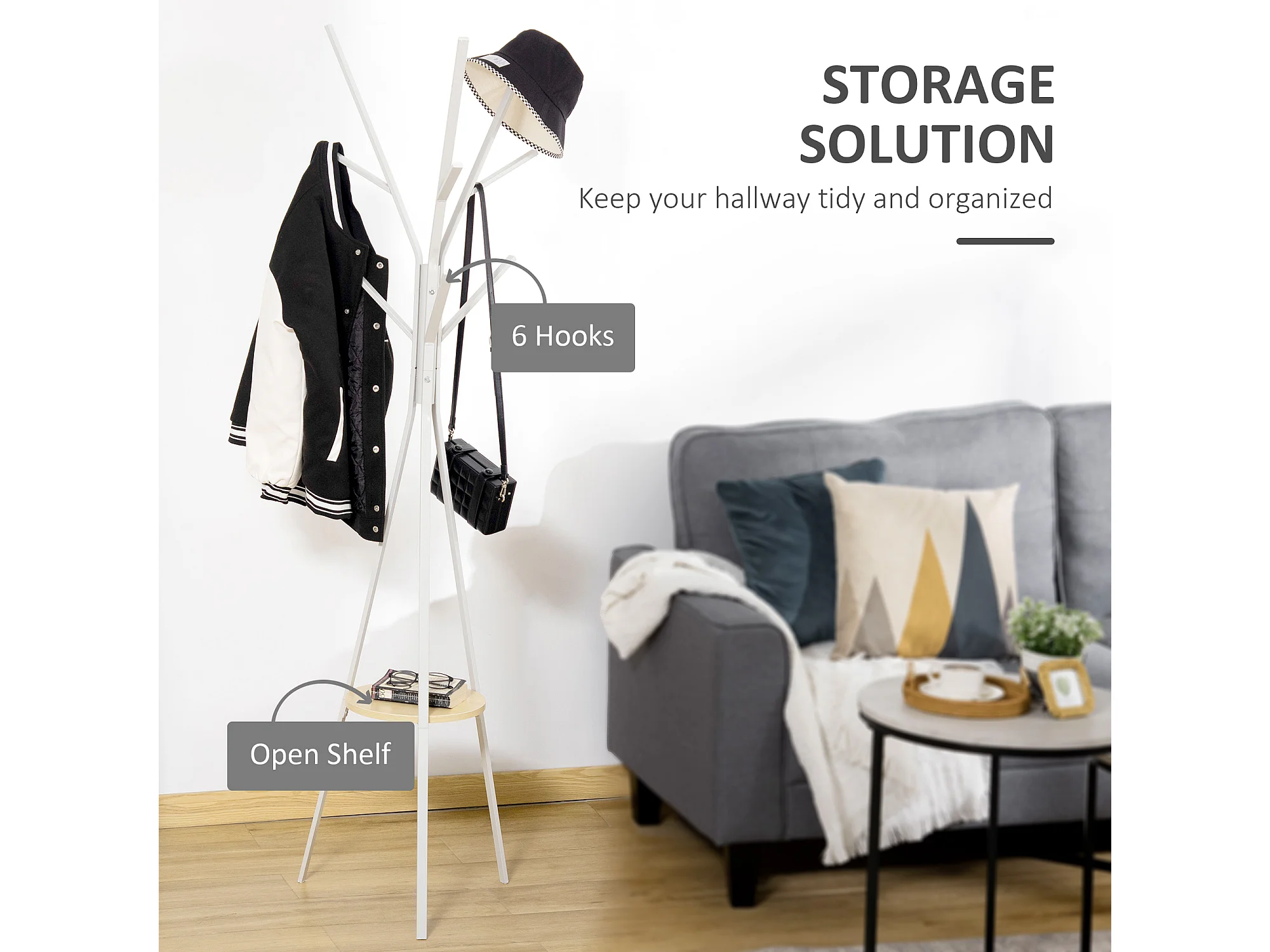 Porte-manteau sur pied, avec étagère et 3 barres, métal blanc (45x45x180 cm)