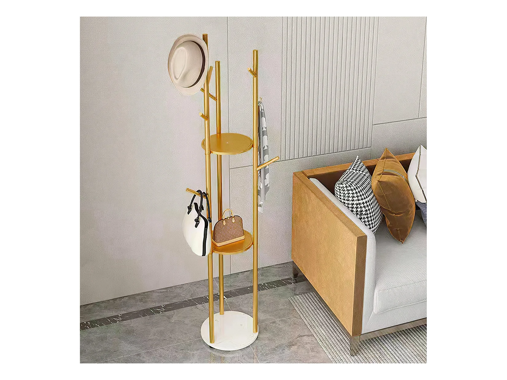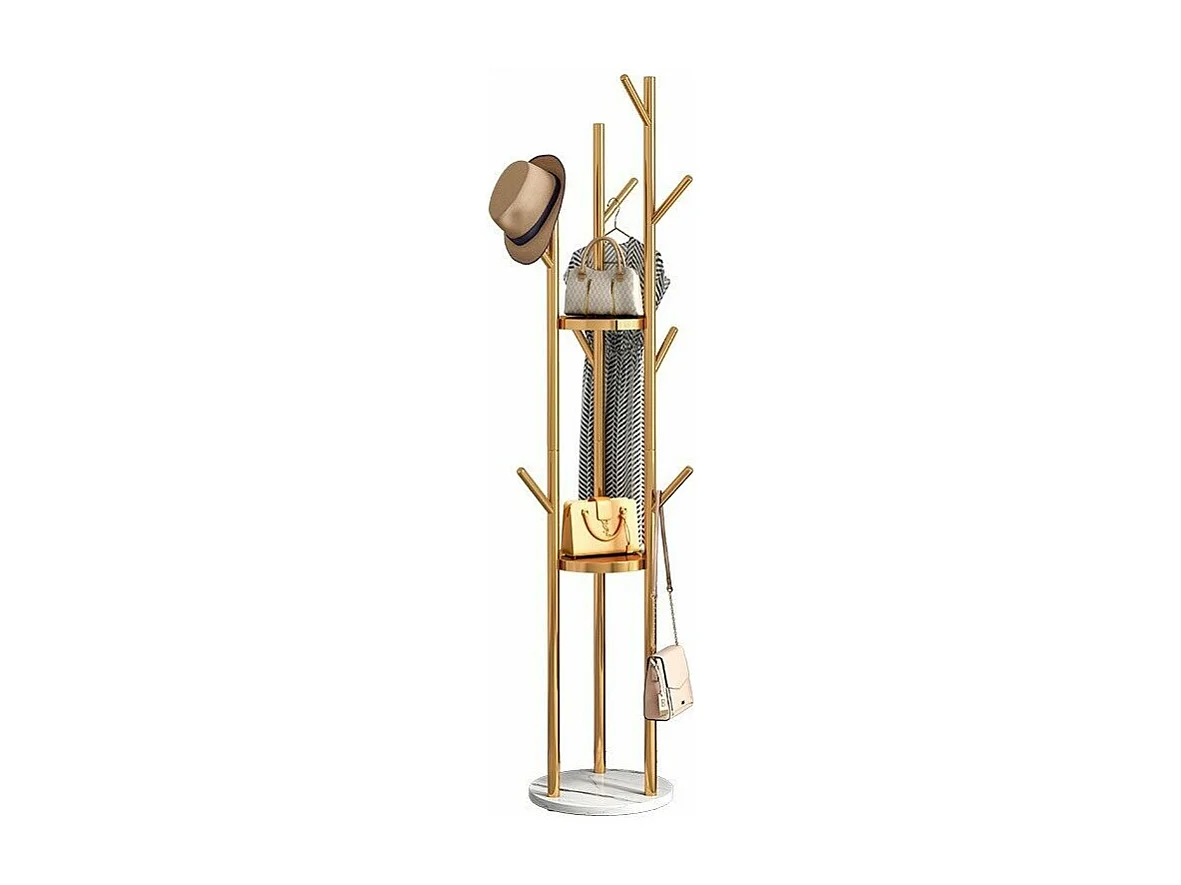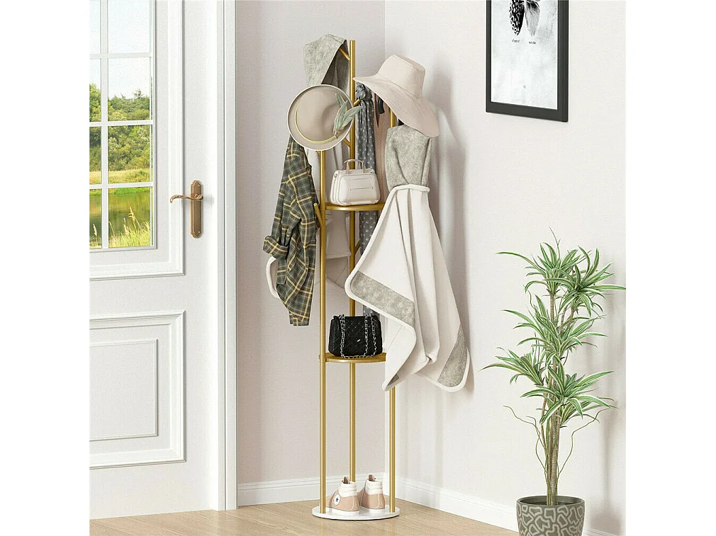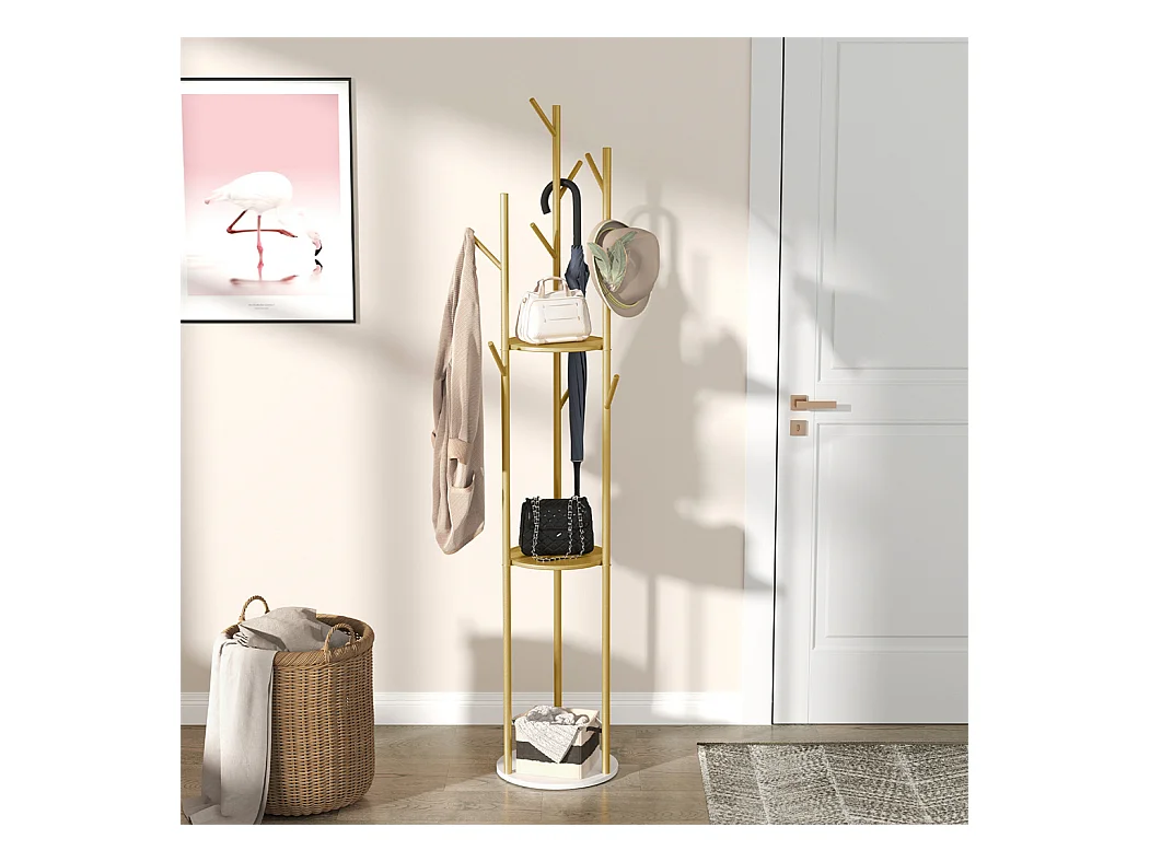 Porte-manteau métal - Doré - Panier de rangement et crochets antidérapants