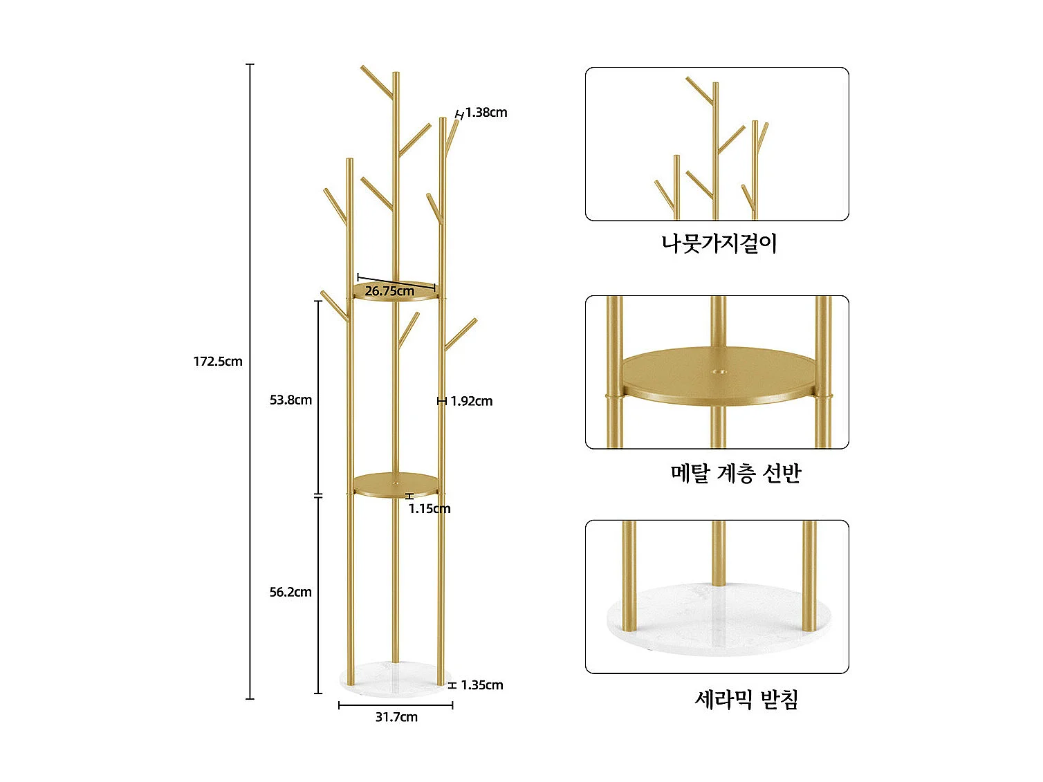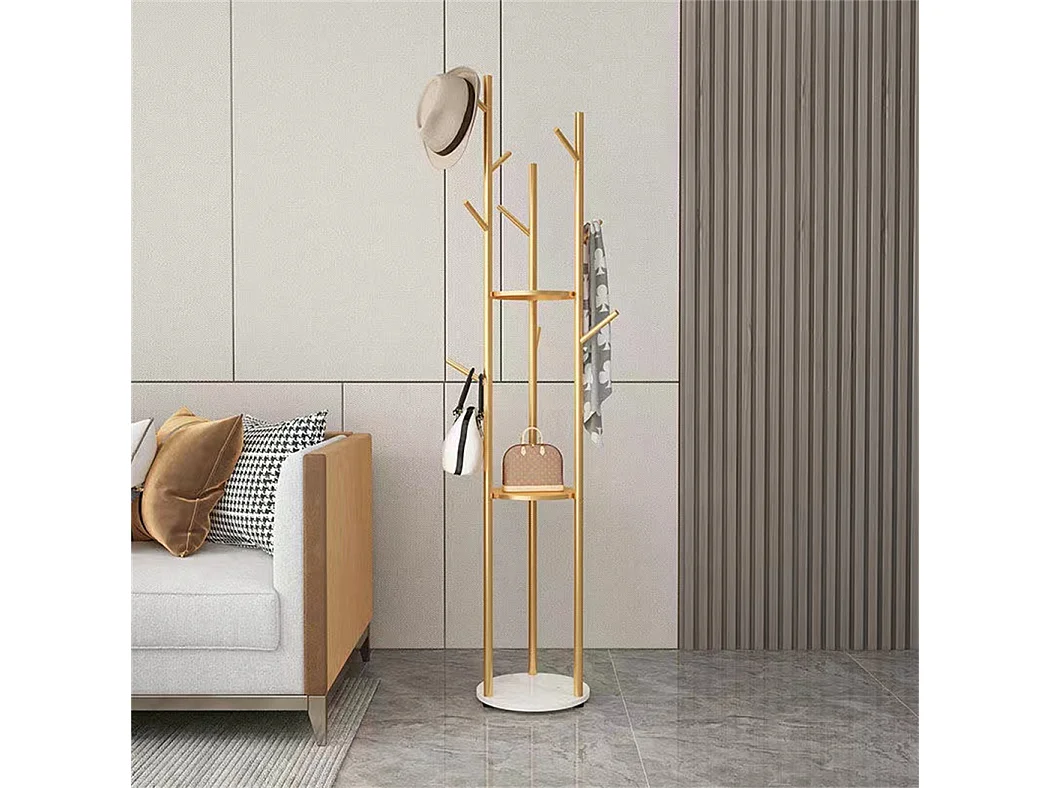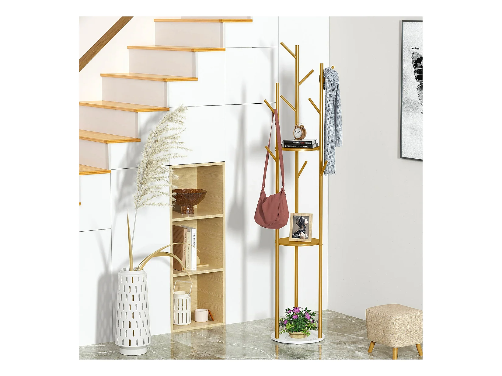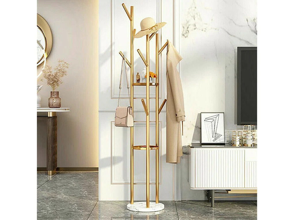 Porte-manteau métal - Doré - Panier de rangement et crochets antidérapants