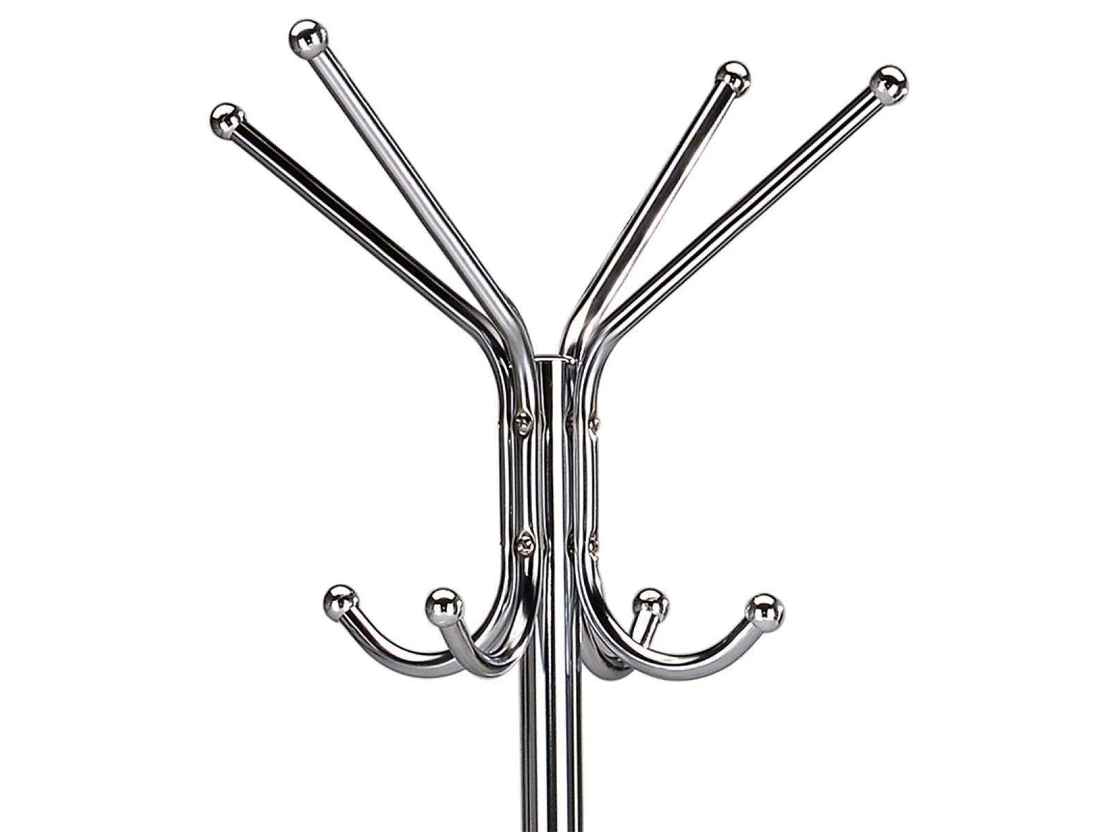 Porte-manteaux ZENO portant à vêtements sur pied en forme d'arbre avec 6 crochets sur différentes hauteurs, en métal chromé