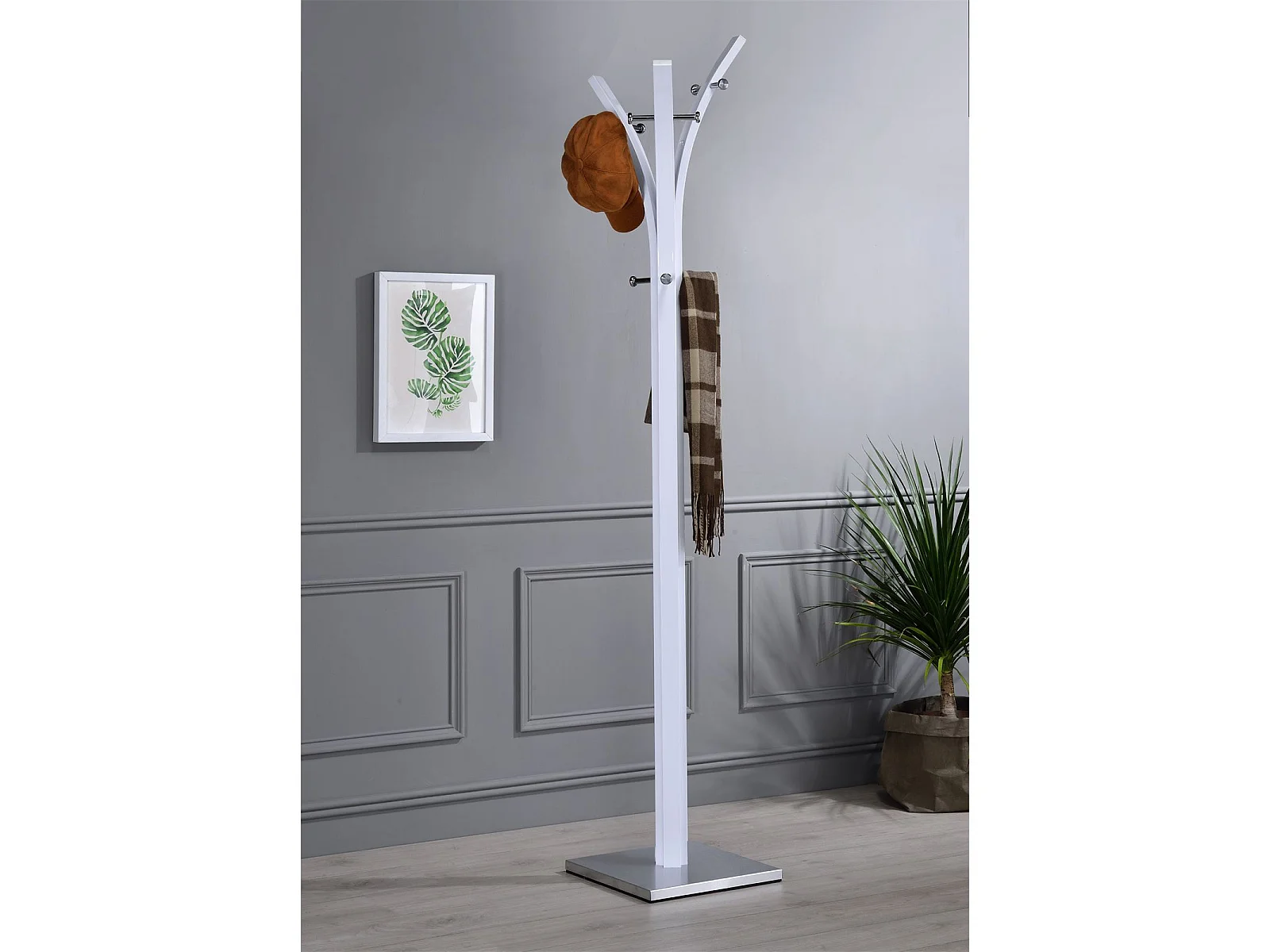 Porte-manteaux ZENO portant à vêtements sur pied en forme d'arbre avec 6 crochets sur différentes hauteurs, en métal laqué blanc