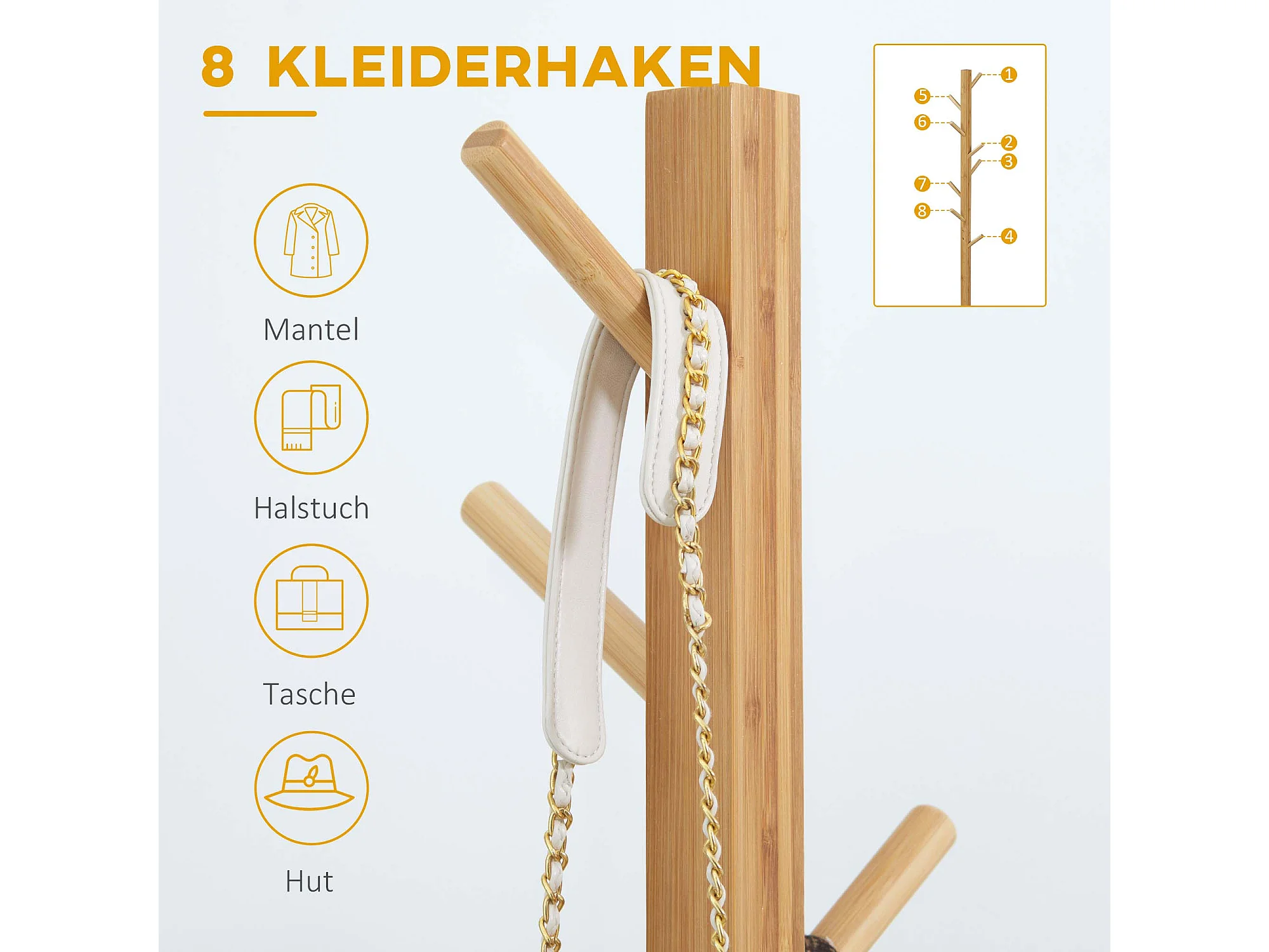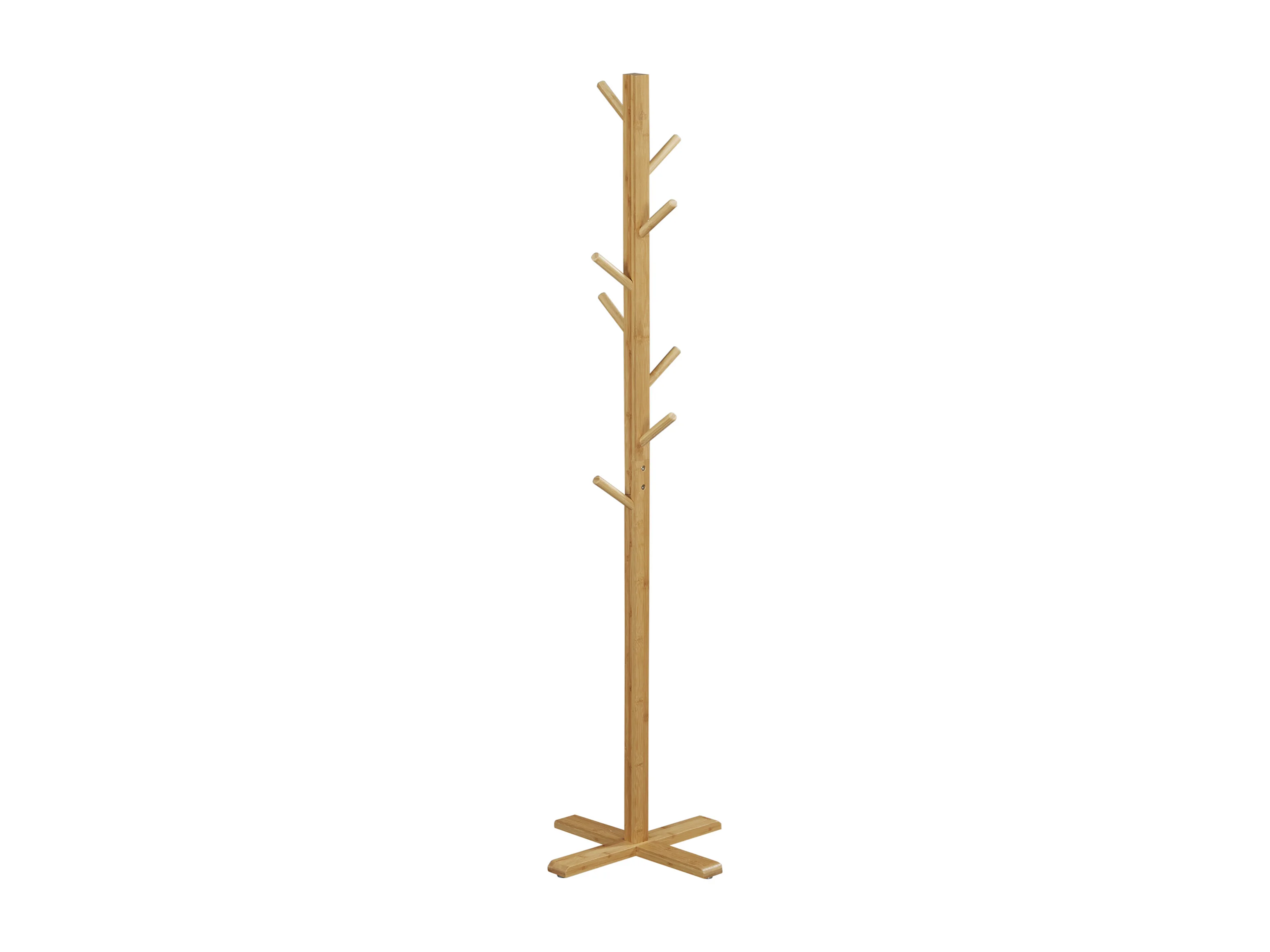 Porte-manteau avec 8 crochets, 3 niveaux, bambou naturel, design arbre, stable et fonctionnel (45x45x170cm)