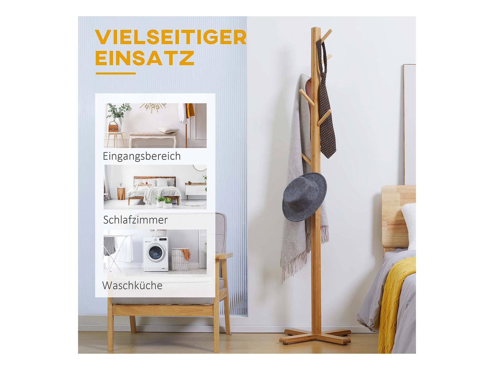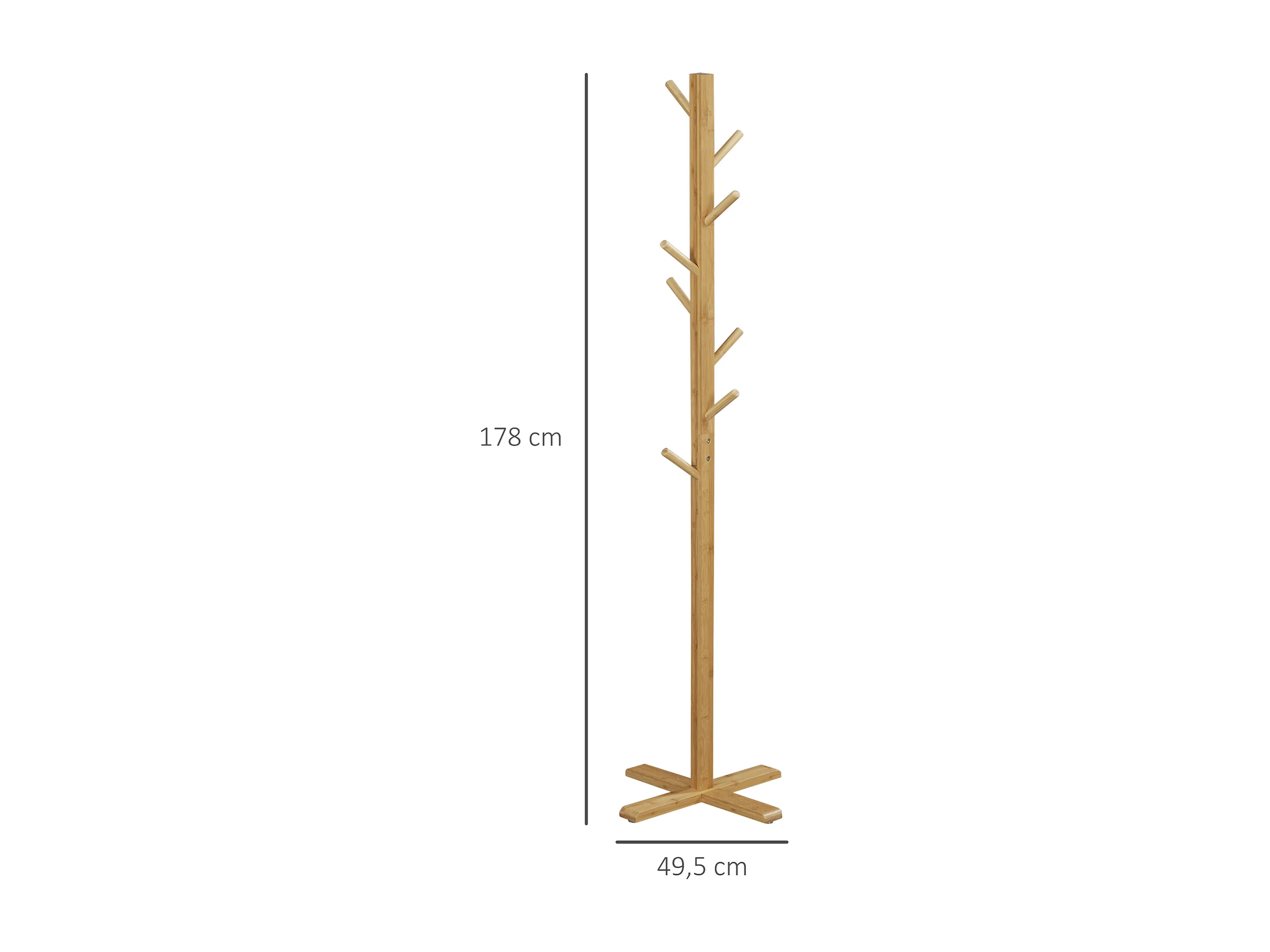 Porte-manteaux en bambou avec 8 crochets, design naturel et fonctionnel, naturel (49.5x49.5x178cm)