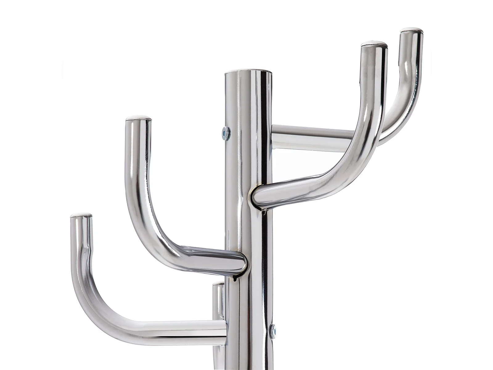 Porte-manteaux ZENO portant à vêtements sur pied en forme d'arbre avec 6 crochets sur différentes hauteurs, en métal chromé