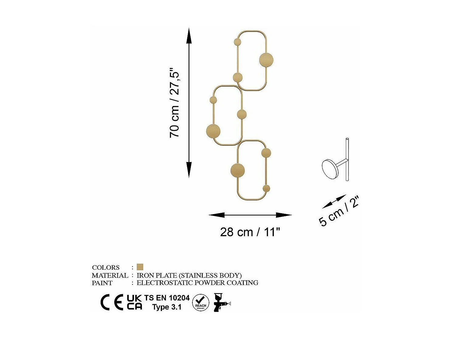 Porte manteaux mural 9 patères en métal doré H64 cm - SAMARA