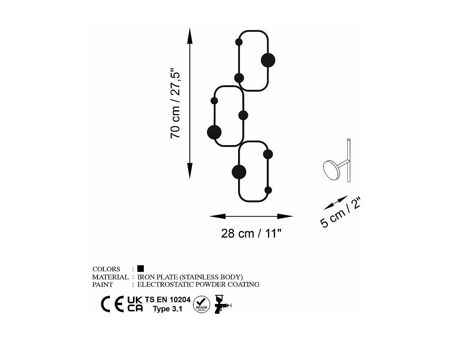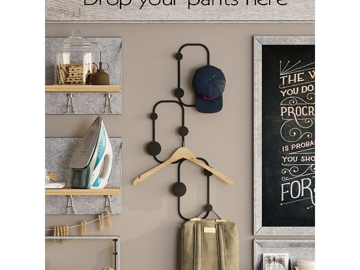 Porte manteaux mural design organique avec 5 patères en métal noir H48 cm - LADYBUG