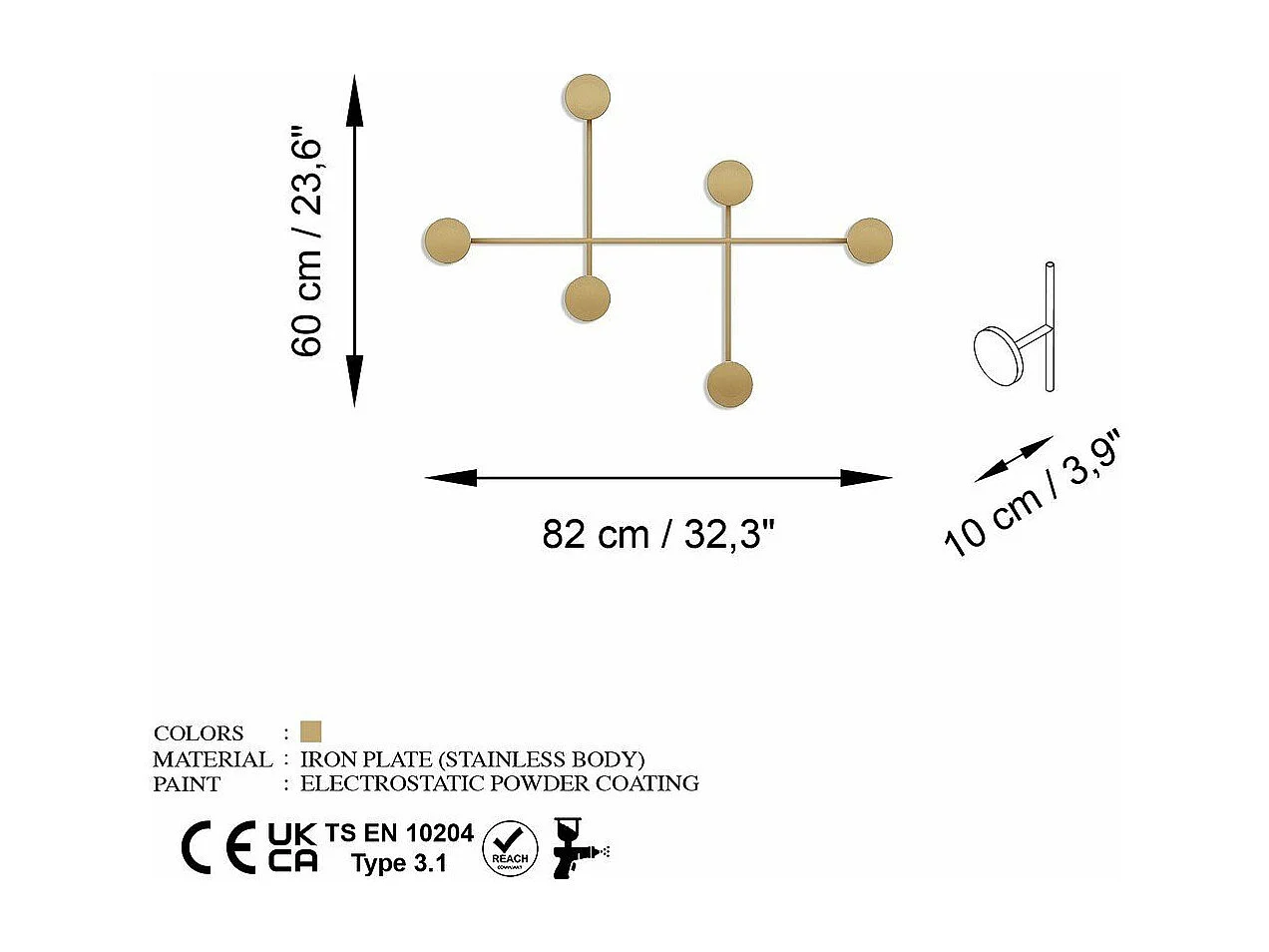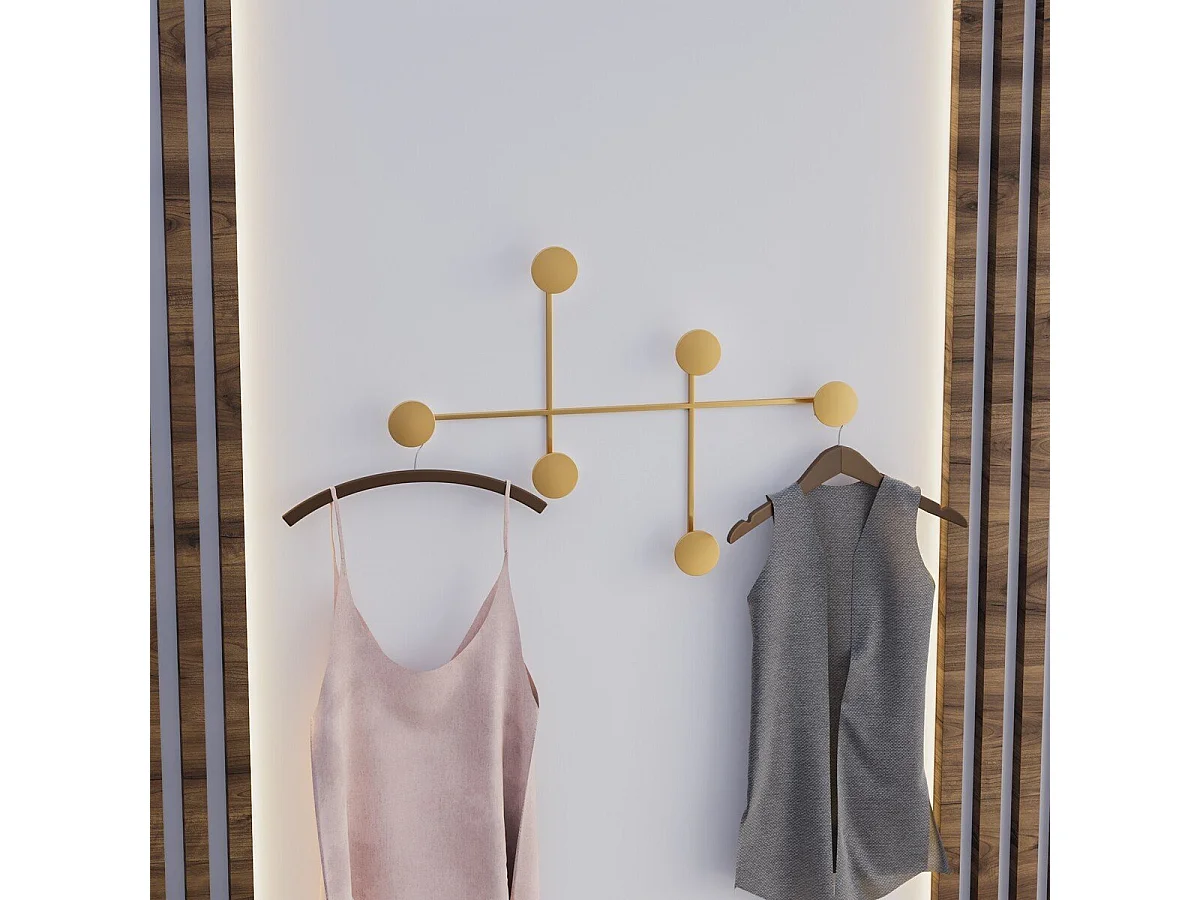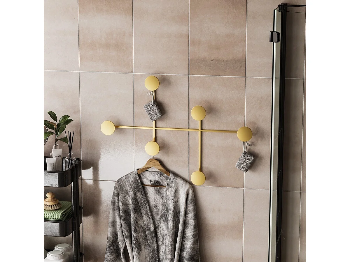 Porte manteaux mural 8 patères en métal doré H45cm - IYON