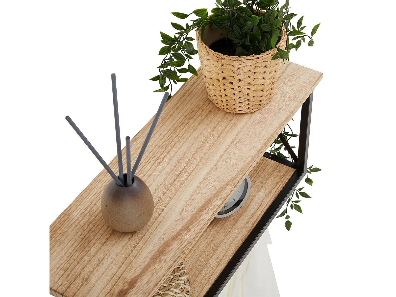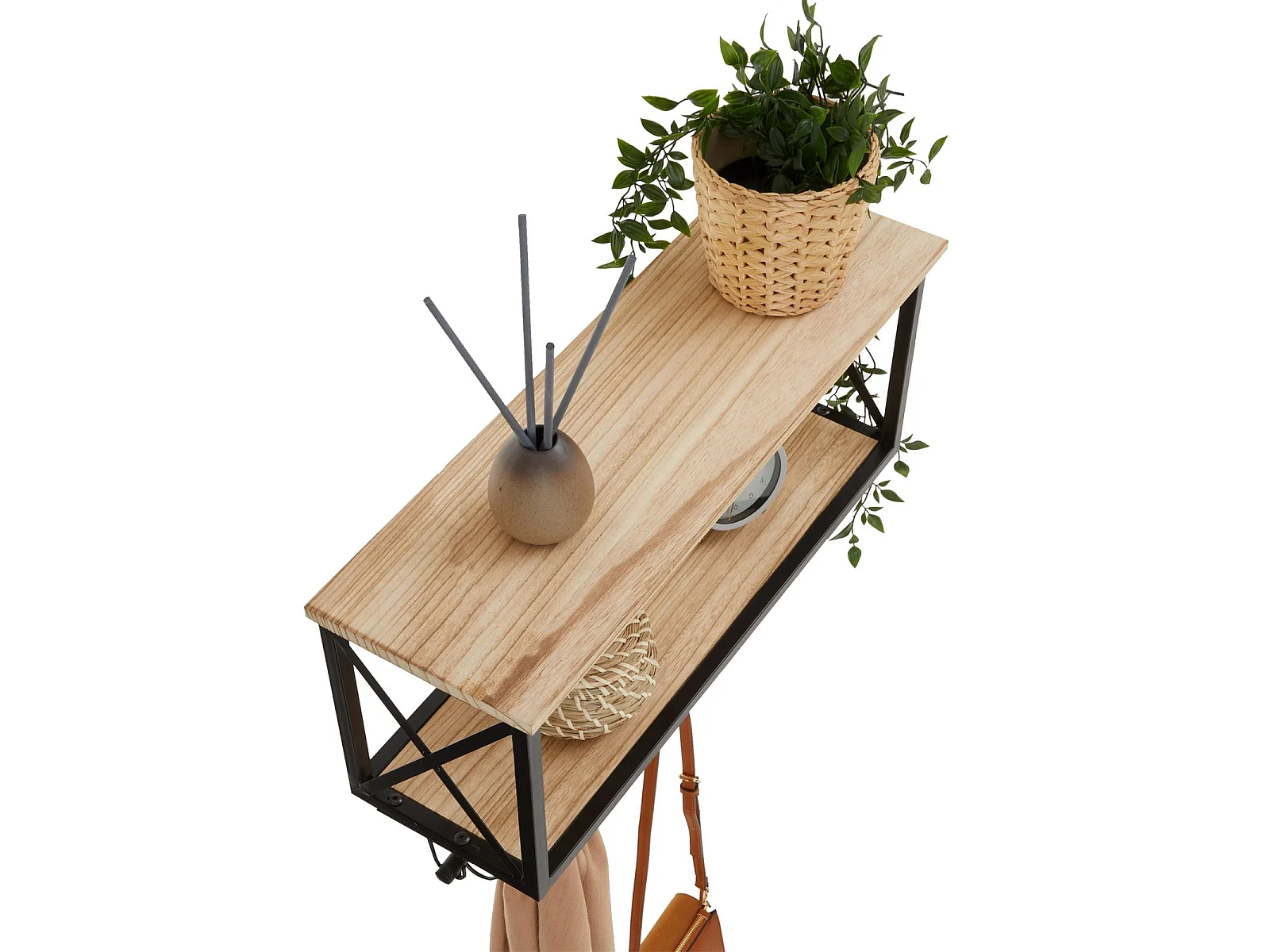 Porte-manteaux mural ARMANDO avec 2 étagères de rangement en bois et 6 patères crochets sur tringle, cadre en métal noir