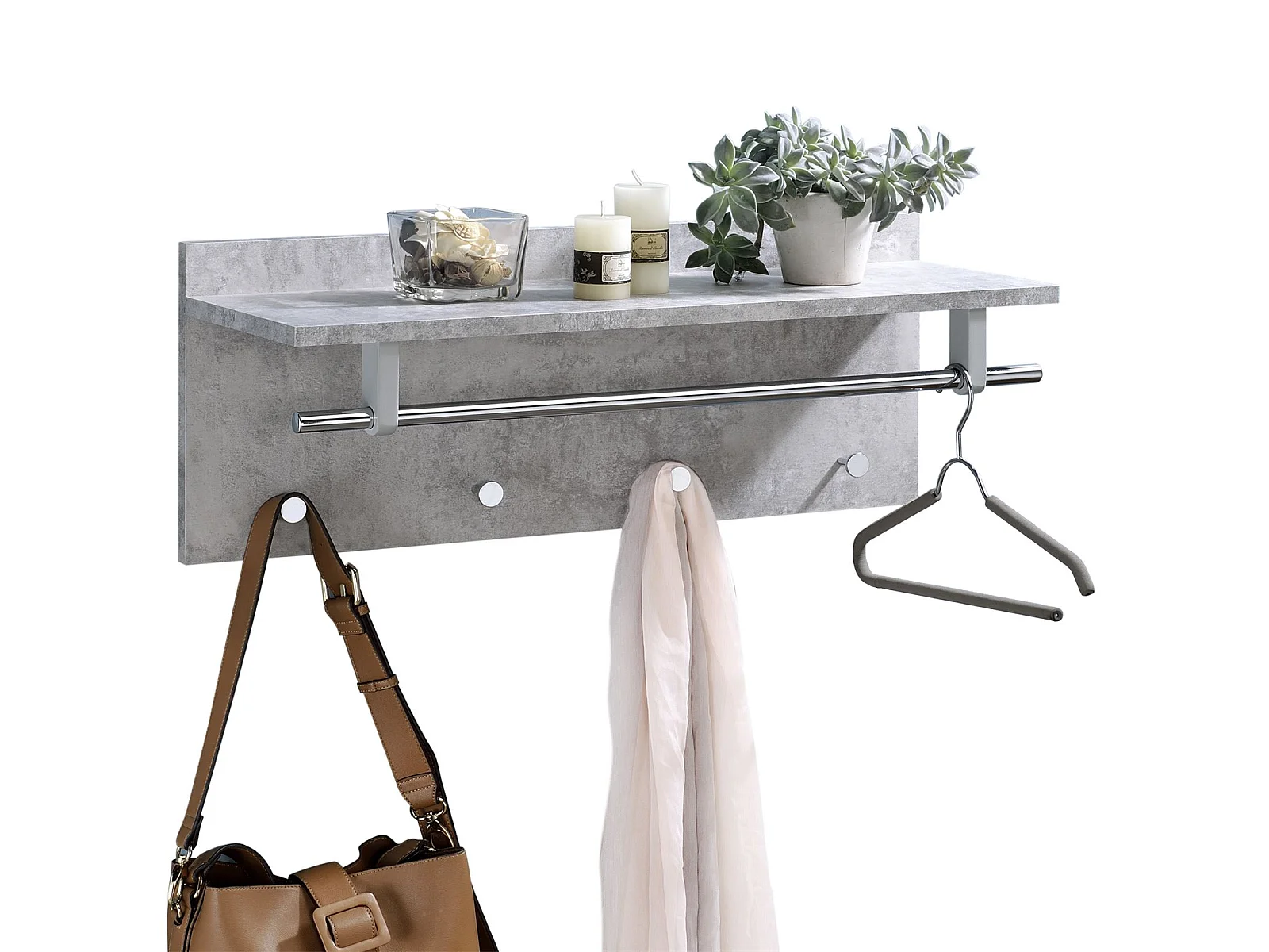 Porte-manteaux mural ULF penderie murale avec 1 étagère de rangement 1 tringle et 4 patères crochets métal chromé, décor béton