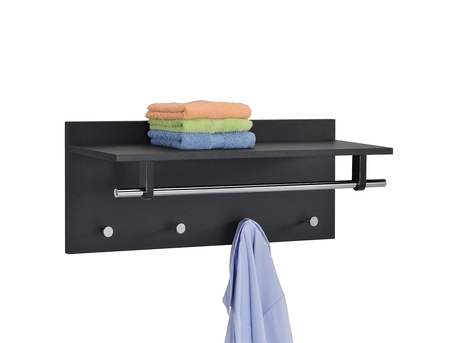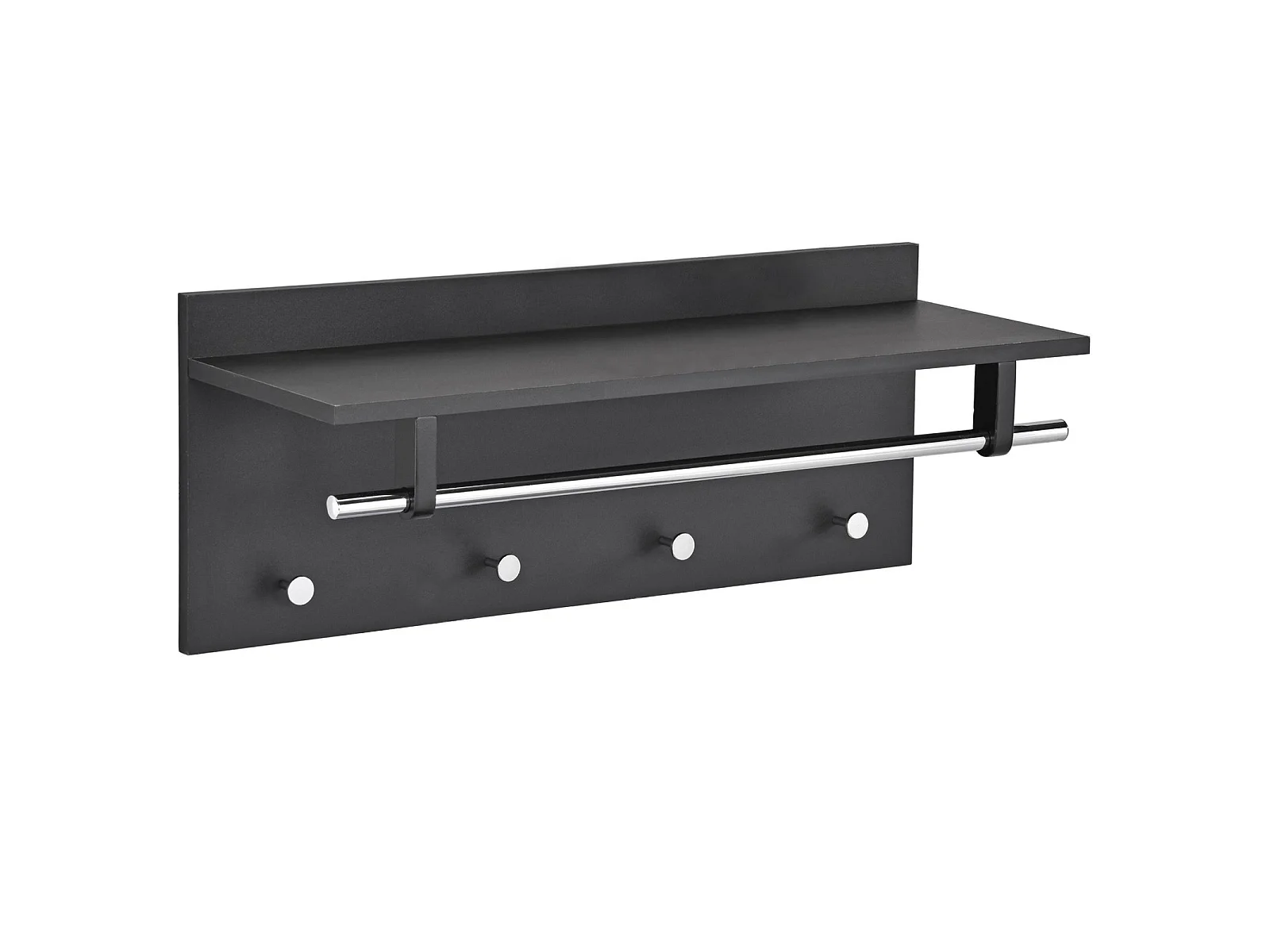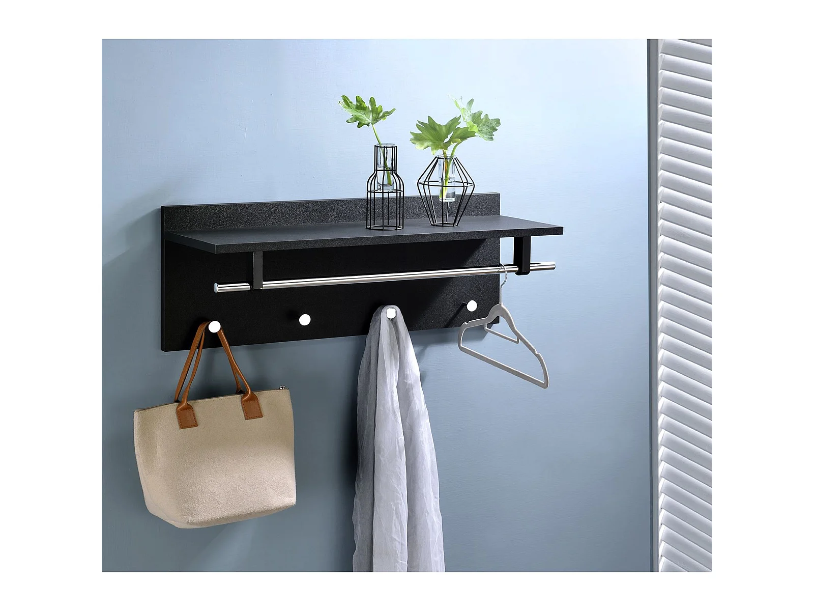Porte-manteaux mural ULF penderie murale avec 1 étagère de rangement 1 tringle et 4 patères crochets métal chromé, décor noir mat