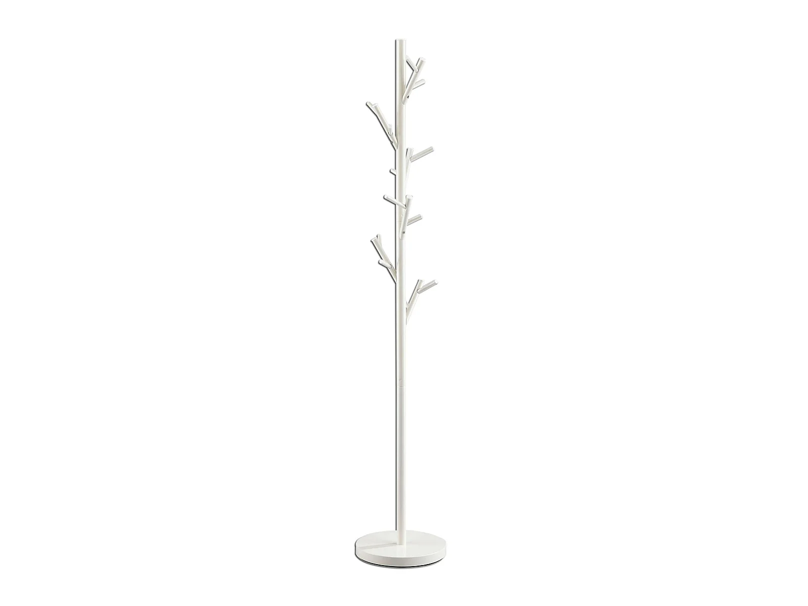Porte-manteaux ZENO portant à vêtements sur pied en forme d'arbre avec 6 crochets sur différentes hauteurs, en métal laqué blanc