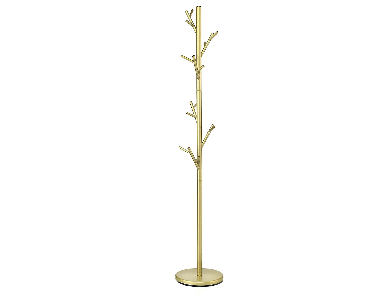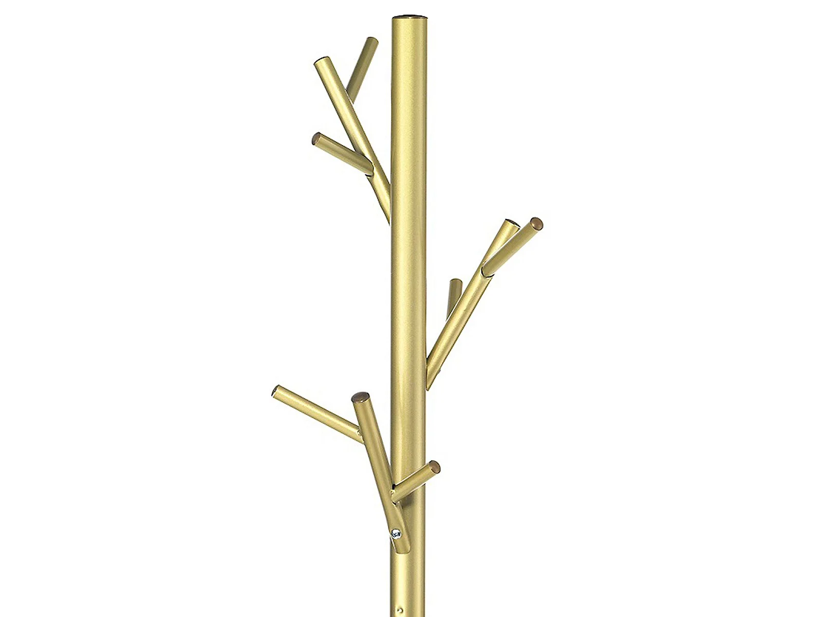 Porte-manteaux ZENO portant à vêtements sur pied en forme d'arbre avec 6 crochets sur différentes hauteurs, en métal laqué doré