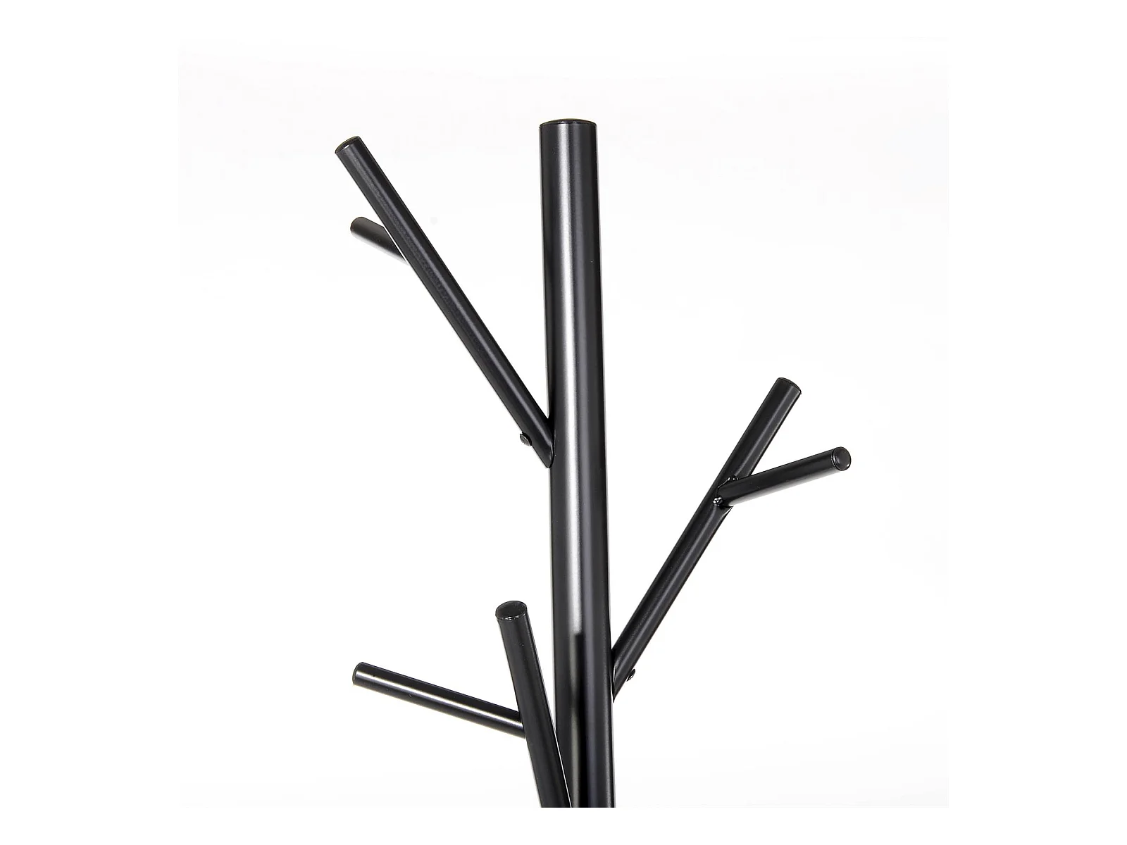 Porte-manteaux ZENO portant à vêtements sur pied en forme d'arbre avec 6 crochets sur différentes hauteurs, en métal laqué noir