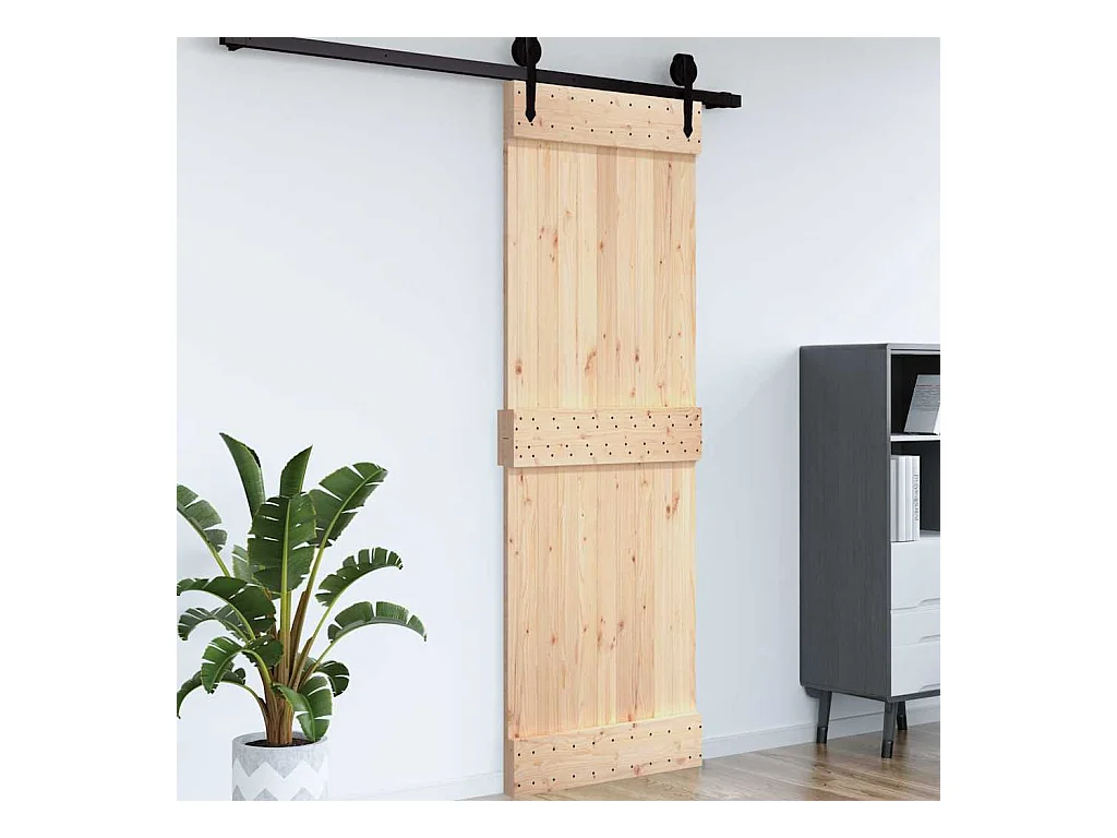 Porte coulissante avec kit de quincaillerie 80x210cm Pin massif
