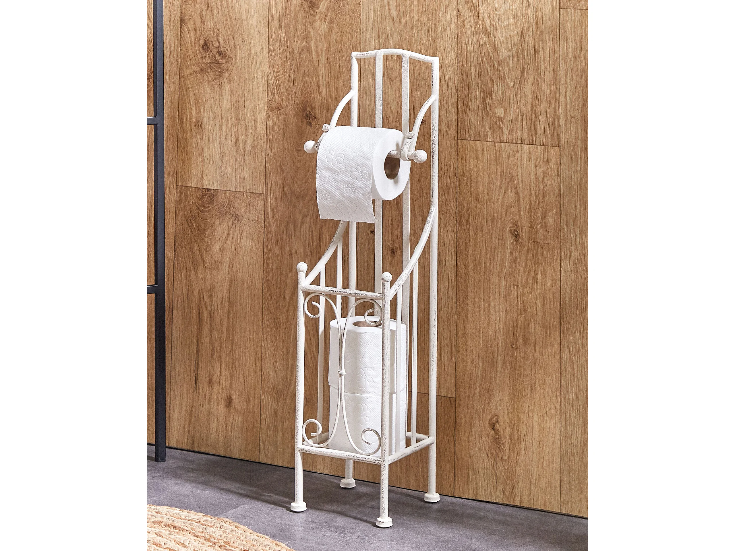 Brosse WC avec support et Dérouleur Papier toilette en métal Blanc H 68 cm