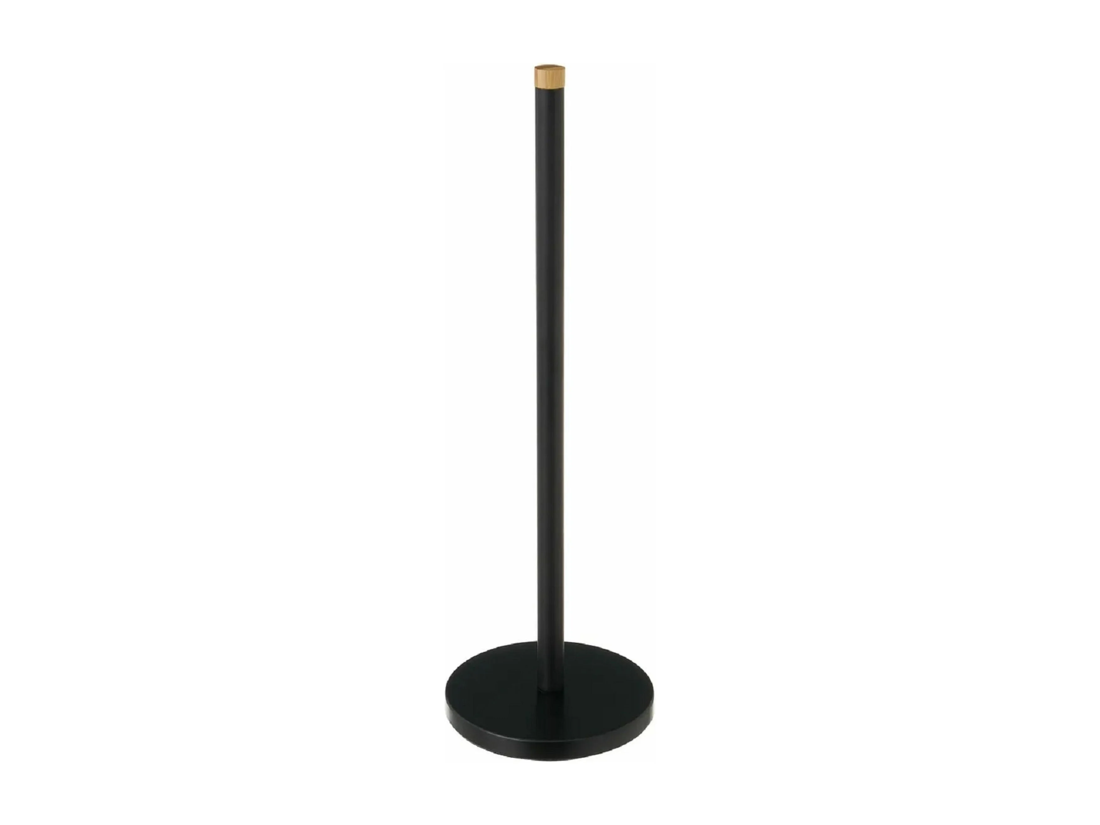 Porte papier wc, porte-rouleau de papier toilette sur pied en métal / bambou coloris noir - Longueur 15 x Profondeur 15 x Hauteur 47 cm