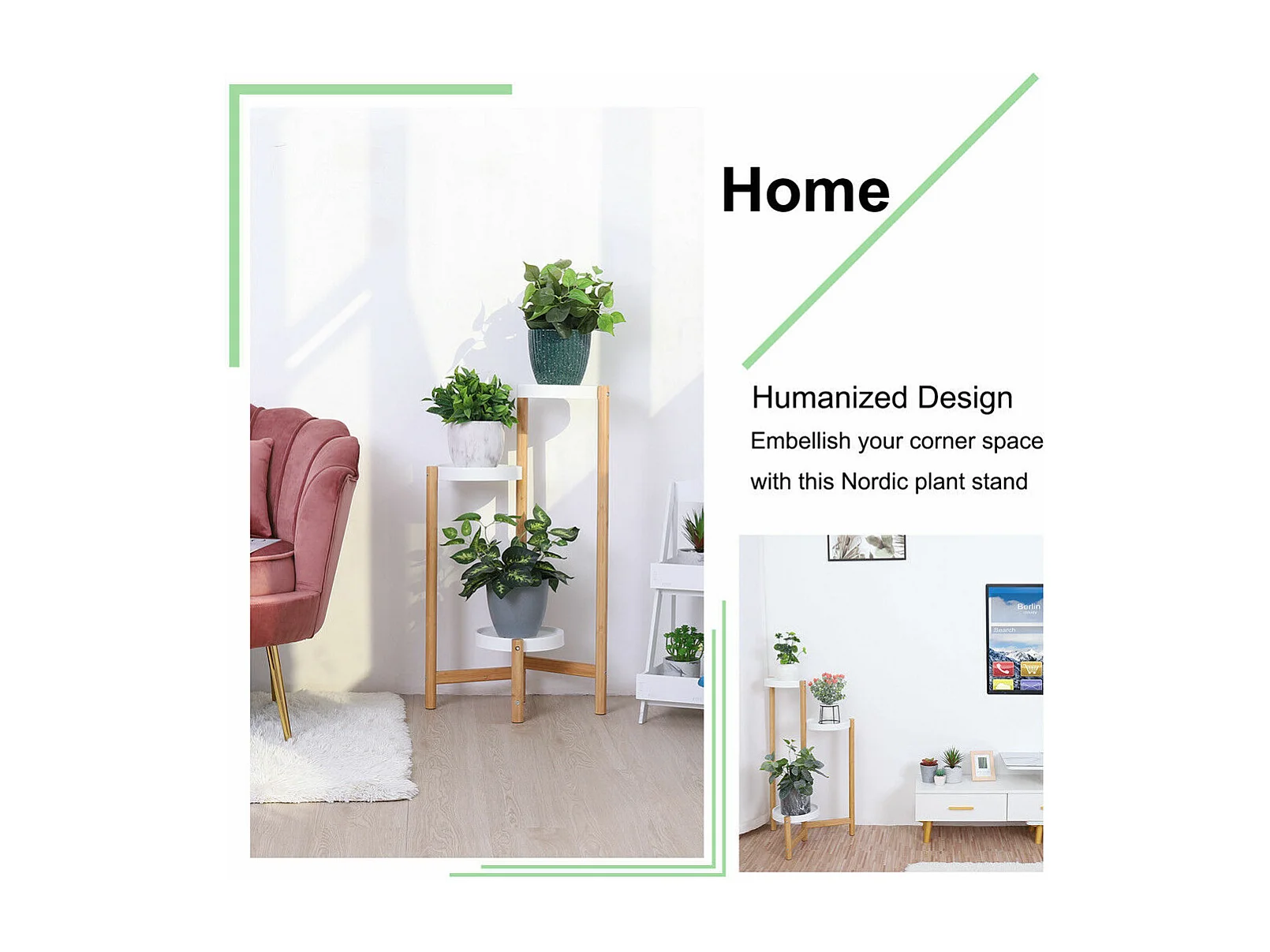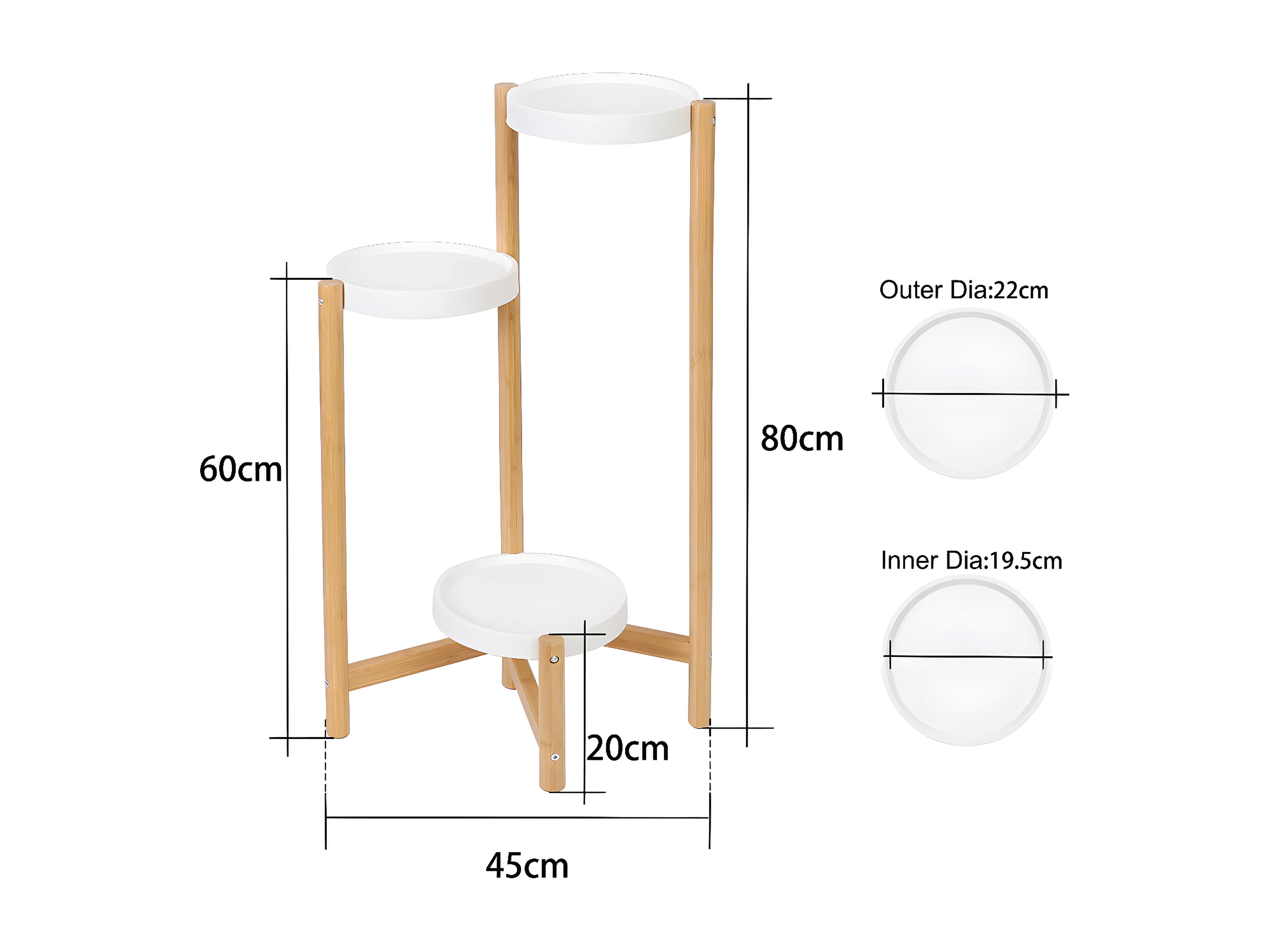 Support à fleurs style scandinave 4 niveaux - porte plante 4 étagères - bois bambou verni métal blanc