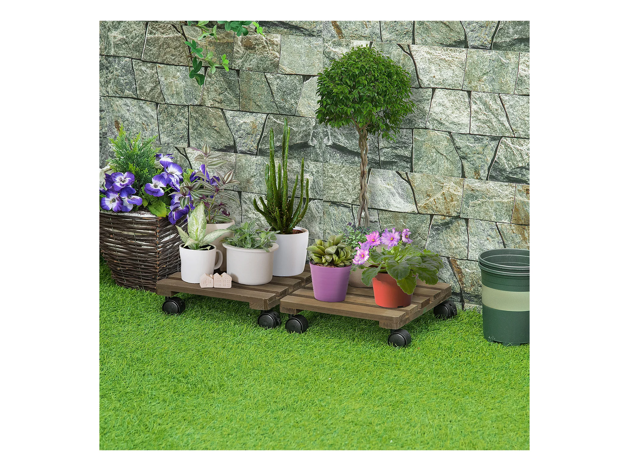 Porte plante à roulettes - support de pots de fleurs à roulettes - lot de 2 - bois sapin pré-huilé