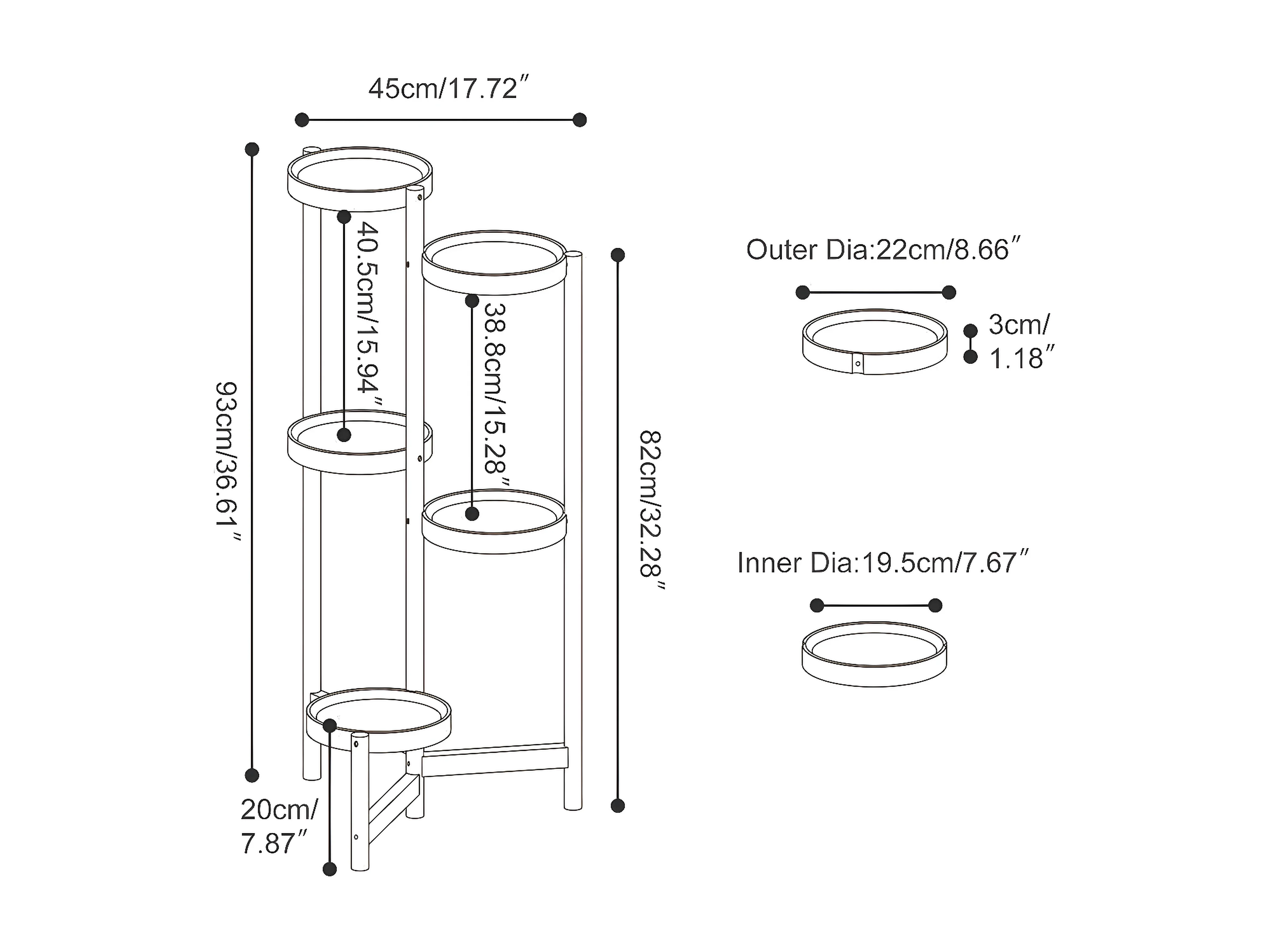Porte plante en bambou intérieur étagère fleur à 5 niveaux escalier plantes pour salon 93x45cm