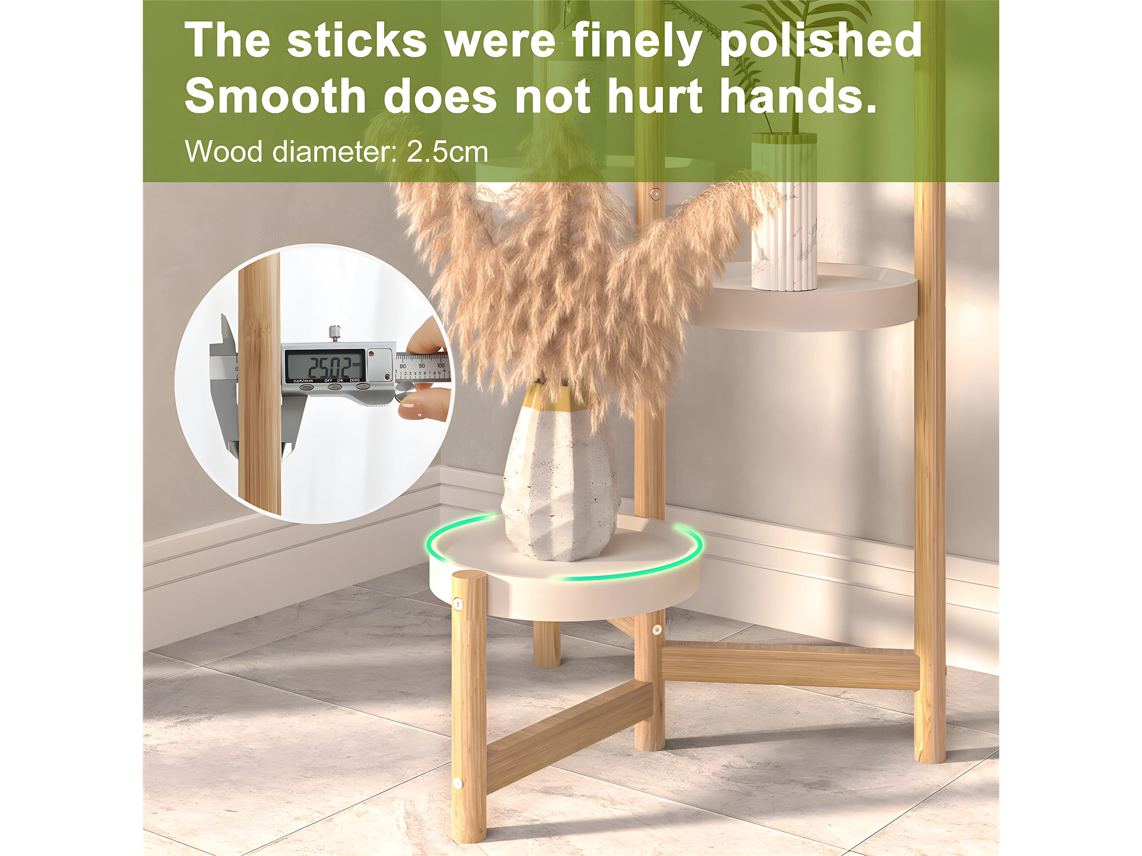 Support à fleurs style scandinave 4 niveaux - porte plante 4 étagères - bois bambou verni métal blanc