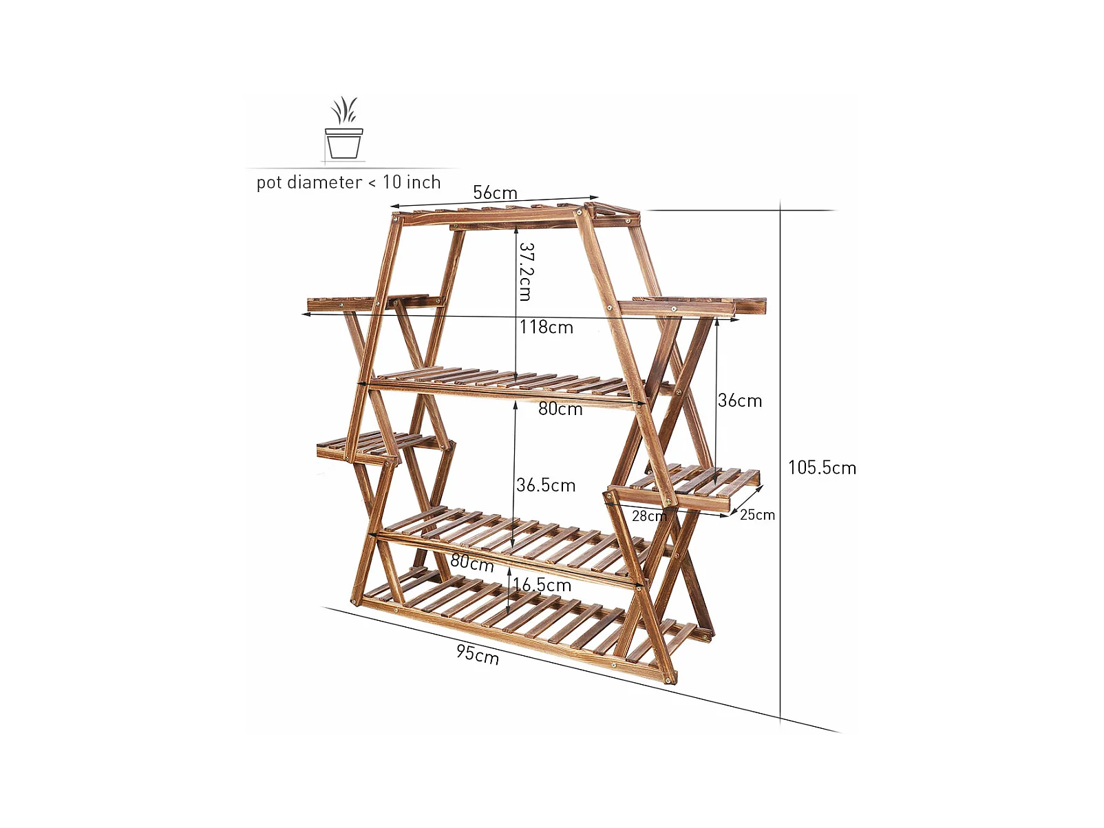 Porte plante intérieur étagère extérieur support plantes sur pied 105.5x95x25cm